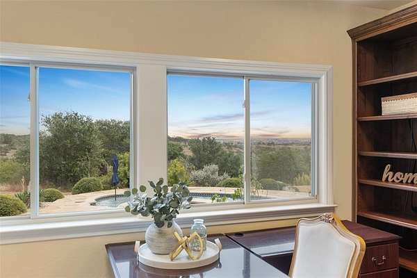 Welcome to “La Colina Ranchita”. As the name implies this 28.53 acre hilltop gem offers long distance views, privacy and beauty all around. The main home and guest home are strategically designed and positioned to enjoy beautiful sunsets whether inside or relaxing by the pool. As you come through the gate you will travel along a newly chip sealed driveway slowly winding through groomed oak trees. The land features an orchard and garden including irrigated raised beds, various hardwood trees throughout & walking/horse riding trails lined with native grasses, shrubs, wild grapes, blackberries and a springtime wildflower meadow. The property is fully fenced & wildlife exempt. There is a large 38x30 metal barn, workshop and RV carport. In addition to the main residence a charming cabin features a kitchen, bedroom, bathroom, and wrap around porch. The land is an excellent balance of both groomed manicured grounds and natural undisturbed habitats. Stepping into the luxurious main house you will immediately notice the large windows throughout which maximize the breathtaking eastern and western views. Function meets beauty in this custom 4 bedroom home with additional office.