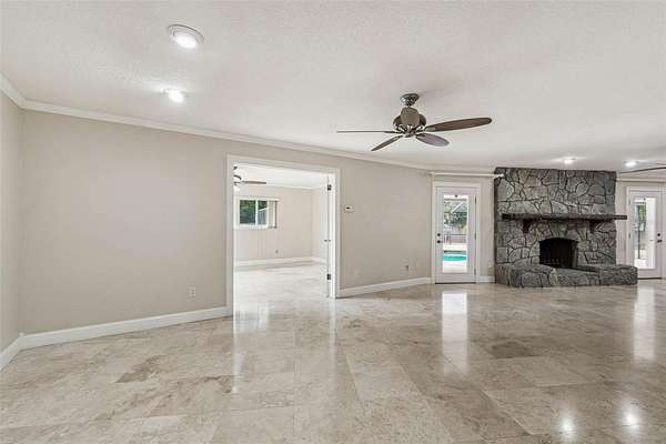 Welcome to your private slice of Valrico paradise. Tucked away at the end of a quiet cul-de-sac, this 3,187 sq. ft. estate sits on 4.12 acres with water views of the private waters of Valrico Lake--and lake access included. Properties like this rarely come available. The home is designed for comfort, gatherings, and effortless indoor-outdoor living. Step through double doors into a spacious foyer. The formal living room showcases charming bay windows, while the large formal dining room--complete with a bi-directional door to the kitchen--is perfect for hosting holidays and special occasions. The kitchen offers granite countertops, abundant cabinetry, stainless steel appliances, and its own bay window with peaceful views. It opens to a warm, inviting family room centered around a stone wood-burning fireplace, with multiple entryways leading to the lanai. A generous bonus/flex room also connects directly to the outdoor living space, making it ideal for game nights, hobbies, or a second gathering area. The primary suite is a true retreat, featuring a private sitting room and exclusive access to its own screened patio. The ensuite bathroom includes dual sinks, a large walk-in shower, and a spacious walk-in closet with built-in shelving. Two additional oversized bedrooms, 3.5 total bathrooms, and a large indoor laundry room provide plenty of room to spread out. The home also includes a wheelchair ramp that can stay or be easily removed, along with an extra storage room off the garage. Step outside to the massive screened lanai, highlighted by a sparkling 12-foot-deep in-ground pool and an extended paver patio--an entertainer's dream. Whether you're hosting a summer BBQ, unwinding after a long day, or watching wildlife near the lake, this space is meant to be lived in. The entire property is fully fenced, with an oversized driveway offering ample parking for guests, trailers, equipment, or all of the above. Two impressive barns--both powered with electric--expand the possibilities even further. Barn 1 (approx. 50' x 20') features garage doors on both ends, and an attached extension perfect for a greenhouse or additional storage. Barn 2 (approx. 58' x 36') includes built-in shelving and generous space ideal for workshops, business operations, hobbies, or agricultural use. The property is zoned agricultural, offering flexibility you simply don't find in a typical residential setting. A gated rear entrance at the back of the property provides convenient access to Front St., especially for larger vehicles and equipment. With well and septic, a water softener, private lake access, two powered barns, and 4.12 acres of usable land, this estate blends privacy, space, and endless opportunity--all in a highly desirable Valrico location. Bring your vision. Bring your toys. Bring your business. NO HOA or CDD! This property is ready for whatever you dream next. Only 3 miles from State Road 60, where you'll find every convenience you will need- shopping and dining, close to the hospital, near major interstates for easy commuting, and only about 16 miles from Downtown Tampa.