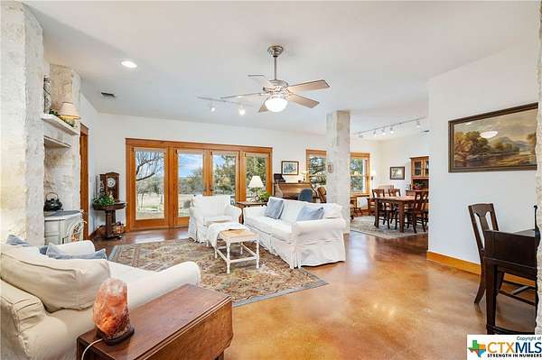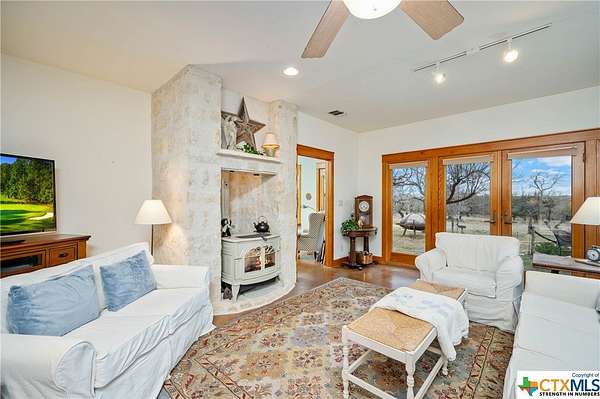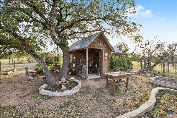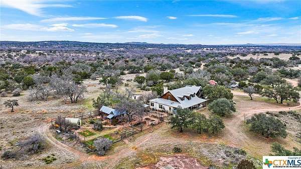 Nestled in the heart of Enchanted Vista, this beautiful 61.54-acre ranch stands as a testament to the beauty and solitude of the Texas Hill Country. Located just 23 miles north of Fredericksburg and a mere 2 miles from Enchanted Rock, it offers the perfect blend of seclusion and convenience, making it an ideal spot for those looking to escape the hustle without straying far from civilization. The land itself is a sight to behold, with gently rolling hills dotted with mature Live Oaks, Texas Persimmon, Juniper and other native foliage, providing not just a haven for game like whitetail deer, turkey, and axis; but a picturesque backdrop that defines the area. The presence of minimal hogs ensures the tranquility of the land is preserved. It's a canvas of natural beauty, with scenic vistas that stretch towards the horizon, including Enchanted Rock. At the heart of the property sits a charming 2,800 sq. ft. custom ranch house, built on a bluff to capture awe-inspiring views of the surrounding landscape. Beside the house lies an expansive, fenced garden, a beacon of self-sufficiency with fruit trees, plentiful beds, a greenhouse, and a workshop featuring a half bath for those sun-soaked days of labor. Nearby, a charming chicken coop and rabbit hutch enrich the setting, offering fresh produce and a taste of pastoral bliss. Beyond, a tranquil pond nestled behind the home provides a perfect haven for a peaceful afternoon. Featuring a detached two-car garage with a 550 sq.ft. living space above, as well as a vital water well for reliable household and agricultural water supply. Currently serving as a primary residence, this property holds the potential to be more than just a home, offering a seamless transition for those desiring a weekend retreat in the stunning Texas Hill Country. It stands as an inviting option for anyone in search of a secluded haven or a gathering spot for friends and family, providing a mix of privacy, scenic beauty, and accessibility.