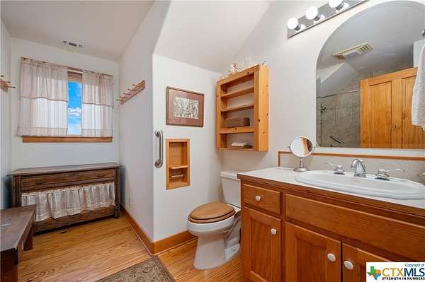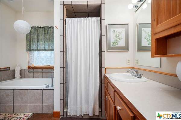 - Attic, Built In Features, Ceiling Fans, Custom Cabinets, Double Vanity, Garden Tub Roman Tub, Home Office, Kitchen Dining Combo, Kitchen Island, Main Level Primary, Pantry, Primary Downstairs, Separate Shower, Skylights, Walk In Closets, Walk In Pantry