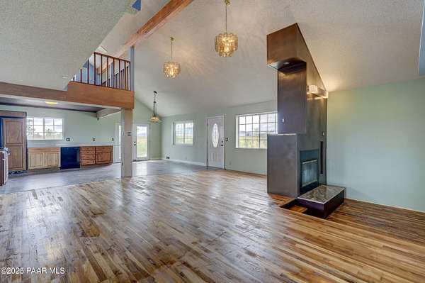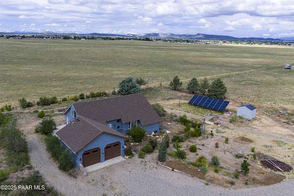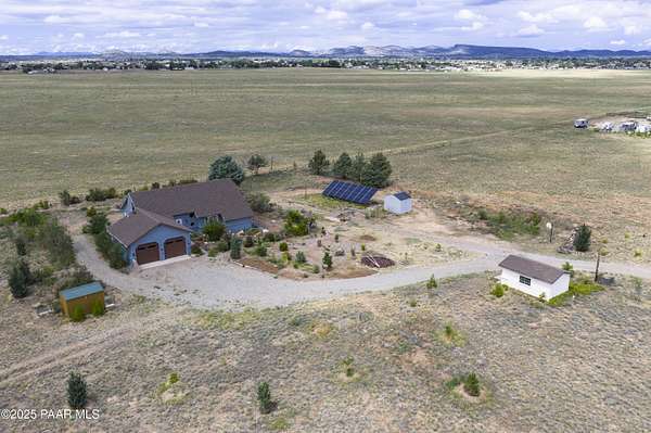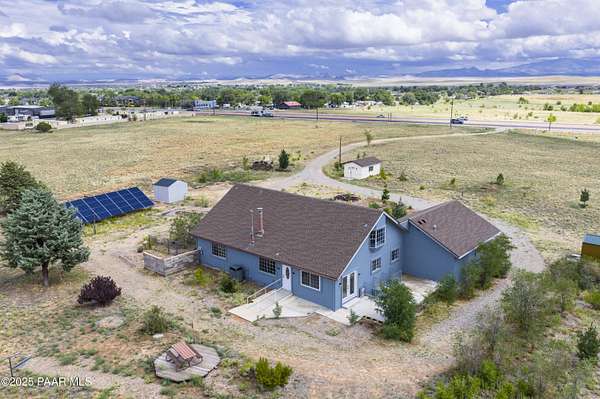 Spacious and versatile, this 4,308 sq ft home in Chino Valley offers the perfect blend of residential comfort and commercial potential. Set on 7 acres with Commercial Light zoning, the property may be used as a private residence, business office, or a combination of both.The 3-level home features 5 bedrooms, 2.5 baths, and a fully finished basement for added living or office space. The primary suite includes a luxurious jetted tub, while additional amenities such as a sauna, hardwood floors, gas fireplace, and abundant storage enhance the appeal. Recent updates include fresh interior and exterior paint for a move-in ready feel.Outdoors, you'll find mature landscaping, three storage sheds, and a two-car garage, along with owned solar for energy efficiency. With its size, flexibility, and convenient location, this property presents a rare opportunity for both homeowners and business owners alike.