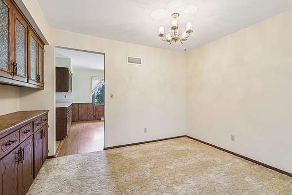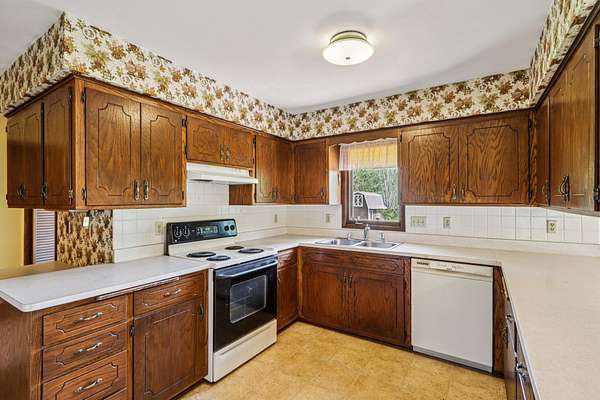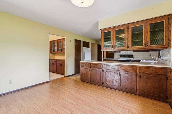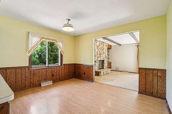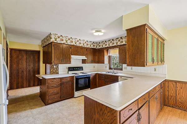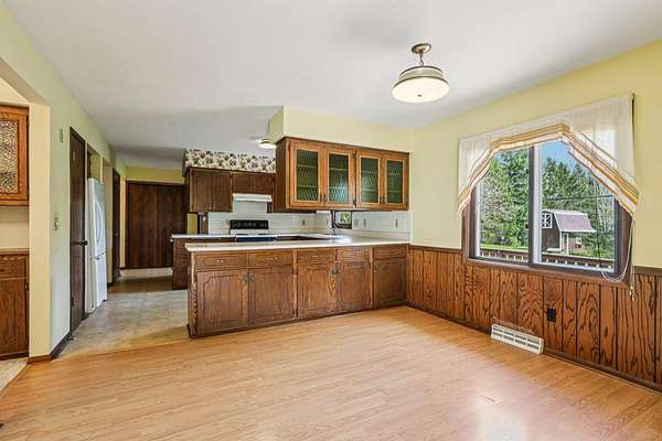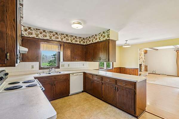 Quiet country living in the Village of Richfield! This charming Swiss-style ranch chalet in the rolling hills of Holy Hill sits on over 6 acres, offering privacy and open space perfect for hobby farming. The 1,976 sqft main level features a family room w/natural stone wood-burning fireplace, kitchen, dining areas, a Lg living room, laundry room, 3 Lg bedrooms, incl a primary suite w/private bath, and a 2nd full bath. The full (& dry) walk-out basement offers expansion potential, quarter bath w/sink rough-in, wood stove, and spacious garage. Step outside to a large rear deck overlooking the land. Apple and pear trees dot the landscape, while a detached barn-style shed handles all your exterior storage needs. Adjacent to Richfield Historical Park. Country living at its finest. See it today!