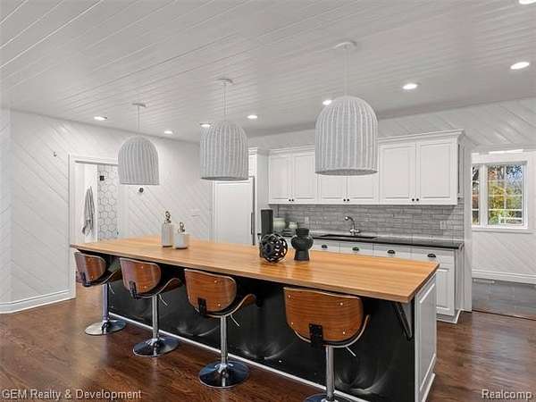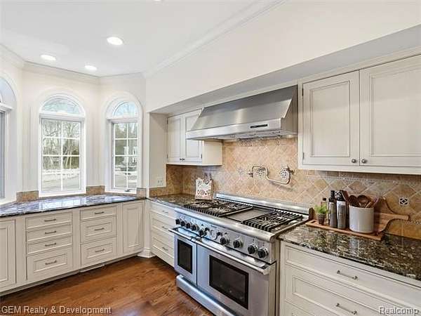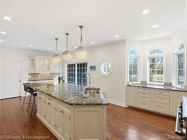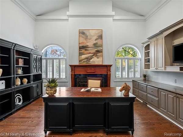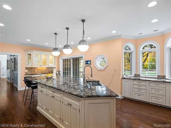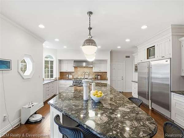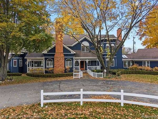 In the Spirit of a Country Estate, this spectacular Bloomfield Hills executive retreat is perfectly situated on a gorgeous, private 2.04-acre parcel overlooking Stonycroft Hills Country Club. Accessed by a winding white picket fence, the main and upper levels feature 6,785 square feet of living space showcasing newer, site-finished oak hardwood flooring throughout, abundant windows, and generous rooms offering exceptional flow. Some highlights include three fireplaces, character ceilings, and abundant natural light. The gourmet eat-in kitchen is a chef's dream with granite countertops, large center island, stainless steel appliances, and butler's pantry with prep area, all adjacent to the impressive formal dining room. The expansive great room captivates with floor-to-ceiling windows and stunning stone fireplace, while the library provides ideal work-from-home space with additional fireplace and vaulted ceiling. The bonus, second great room is an exceptional space complete with mini kitchen and expansive island, ideal for family gatherings, featuring a full bath with direct access to private yard and convenient to the upper level in-law suite with its own private full bath.
