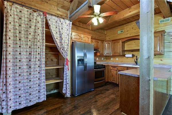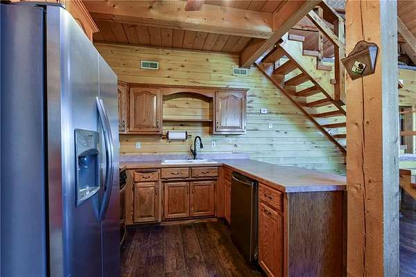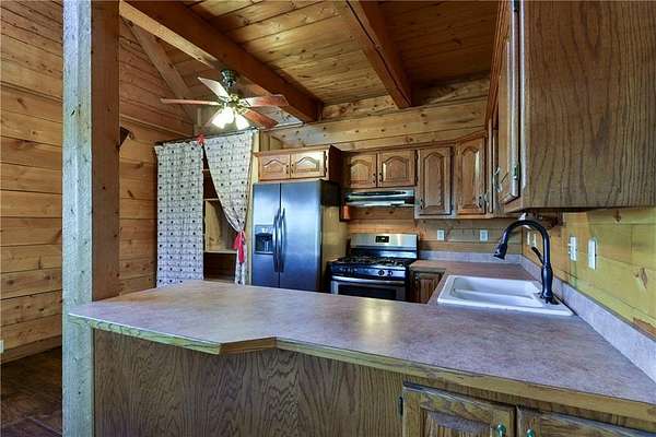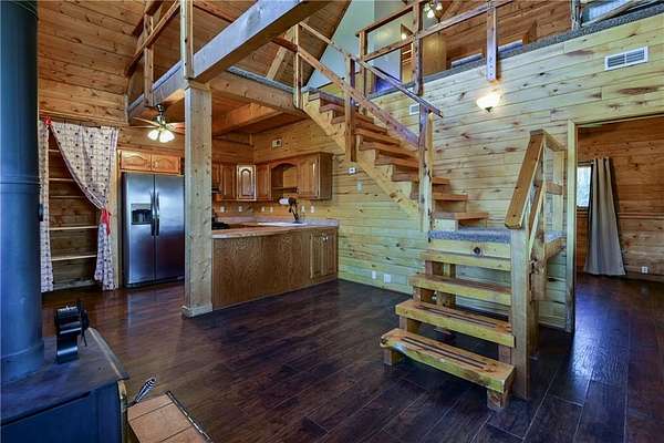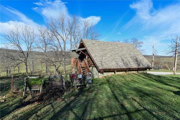 Tucked away on 2.74 peaceful acres, this 2 bedroom 2 bath log cabin invites you to slow down and savor the simple joys of country living. Picture quiet mornings on the covered front porch, coffee in hand, as deer wander through the yard and the world feels just a little more still. Built for both comfort and adventure, the home features a detached three-stall garage perfect for projects, hobbies, or storing outdoor toys. A small front pasture offers space for a favorite farm animal, while multiple outbuildings provide room for storage, workshops, or even a few backyard chickens. Retreat upstairs to the bedroom and step onto your private deck, where evenings are best spent watching the sunset and listening to the sounds of nature. Ideally located just outside Cassville and close to Roaring River, Eureka Springs, and Northwest Arkansas,his log cabin blends rural tranquility with easy access to outdoor recreation. Whether you're looking for a full-time home, weekend escape, or hobby farm check it out.