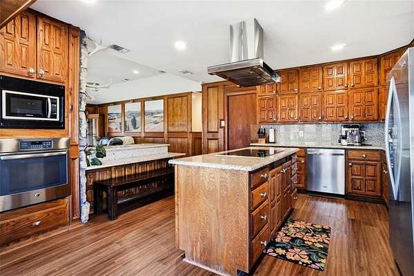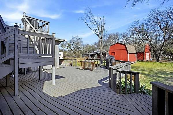 Welcome to this incredible ranchette set on 5.14 acres! This unique estate features a main residence plus two accessory dwelling units making it ideal for multigenerational living, guest accommodations, or income producing rentals. The main home welcomes you with a large covered porches, perfect for morning coffee or evening sunsets. Inside, the living room is anchored by a dramatic floor to ceiling stone, wood burning fireplace complete with a blower fan for cozy efficiency. The kitchen features granite countertops, stainless steel appliances, large breakfast bar, island & an abundance of cabinetry. The primary bedroom offers a private retreat with an ensuite bath showcasing a relaxing garden tub & separate tiled shower. metal roof is 2 years old. The upstairs apartment with 1,596 square feet offers 2 living areas, full kitchen, 2 & a half baths, & washer dryer closet. The second living area impresses with a striking cathedral ceiling accented by wood beams. There's plenty of room to add a pool table or other games to make this the perfect retreat. It even has a large deck ideal for outdoor relaxing. The downstairs apartment with 1,544 square feet also has 2 bedrooms & 2 & a half baths & just needs a cosmetic facelift to make it as gorgeous as the upstairs apartment. Outdoors, the property is set up for horses or livestock with cross fencing, a 30x26 workshop with electric, metal barn with 3 open stalls and hay storage, a 16x16 barn with electric, & an additional 16x12 barn with electric. A greenhouse & chicken coop complete this versatile property. This one of a kind property offers endless possibilities whether you're looking for space to spread out, room for family, or multiple income opportunities, all in a peaceful rural setting. Less than 30 minutes from downtown Fort Worth!