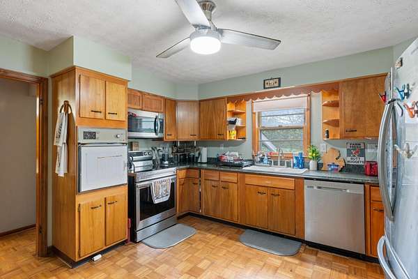 Discover the perfect blend of space, charm, and country living at this 4-bedroom, 7-bath farmhouse nestled on 12.91 acres in the Fairborn Local School District. Offering 3,106 sq. ft. of living space, this home combines classic farmhouse character with modern updates, including a brand-new roof in 2024, 2-year-old HVAC, and individual split units in each bedroom for personalized comfort. The picturesque setting features wooded acreage, a spring-fed pond, and plenty of open space-perfect for outdoor activities, hunting, or simply enjoying the peaceful surroundings. Two large barns, including a newer pole barn, provide exceptional flexibility for storage, hobbies, livestock, or agricultural use. Whether you envision a working farm, a hobby homestead, a hunting retreat, or a private country getaway, 1901 Armstrong Road offers the land, space, and amenities to bring your vision to life.