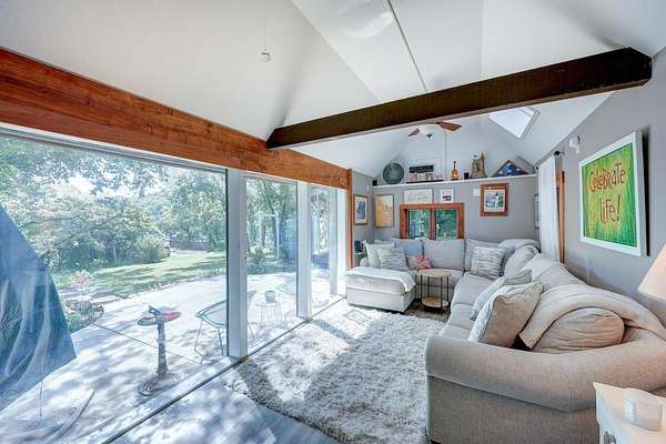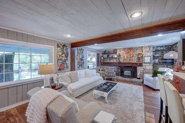 Own a rare opportunity to escape the city but still be within minutes of the conveniences Winfield has to offer. Step into timeless charm and modern comfort with this beautifully updated circa-1900 stone home. Set on approximately 20 scenic acres along the historic California Trail, this property offers history, privacy and breathtaking views of the Walnut River. The home's character shines through with beamed ceilings, walnut wood floors, a stone fireplace in the spacious living room and many windows to enjoy the view. The master bedroom has a wonderful view of the immaculate yard and the Walnut River. The main bathroom is gorgeous with stone counters and floors and a massive walk in shower. The second bedroom is currently used as an office but it has a large walk in closet. The second floor bedroom feels like a treetop retreat, surrounded by nature. The updated kitchen has a stone eating bar, solid walnut counters and floors, all modern appliances, lots of storage and a spacious dining area. The separate laundry room has a access to the patio and yard as well as lots of storage. The sunroom boasts a wall of windows that overlooks the amazing yard and also has a river view. The lower level is a wonderful private guest suite with a stone fireplace with a pellet stove insert and a its own private bath. It would also make an amazing room for a teenager! The outdoor living is equally impressive with a wrought iron fenced backyard, mature landscaping, sprinklers, a large shaded patio with a fire pit and a potting shed. In addition, there is a large deck that offers a wonderful place to entertain or enjoy the view of the Walnut River. There are two historic stone outbuildings - a large stone barn and a workshop - which add charm as well as utility. All of this is located in a secluded area just minutes from town. This is a rare find. Acreage will be determined by a survey. Please schedule your private showing soon.
