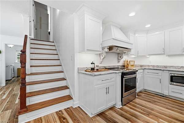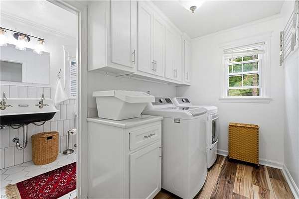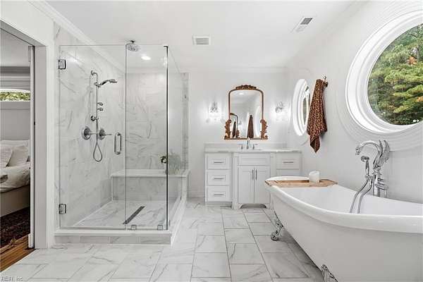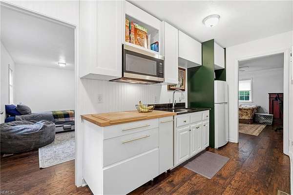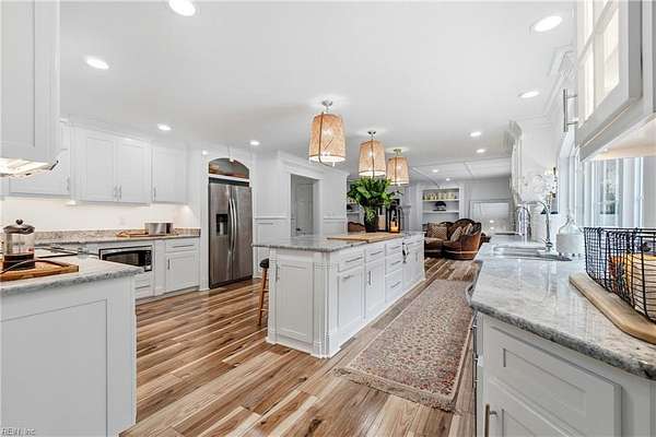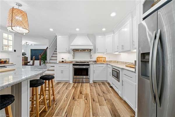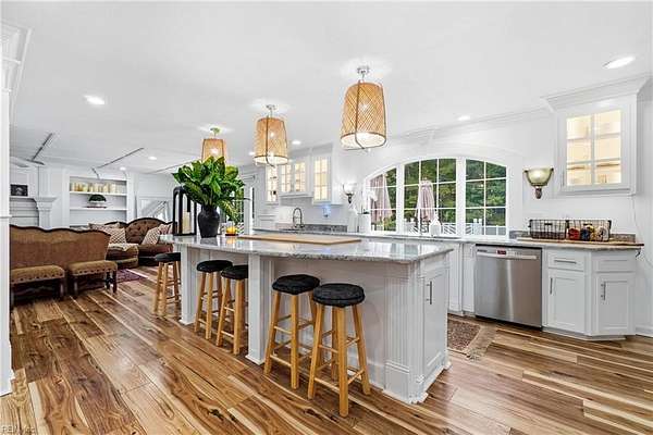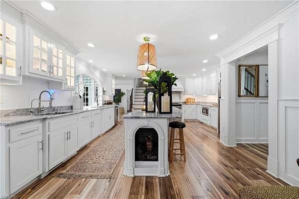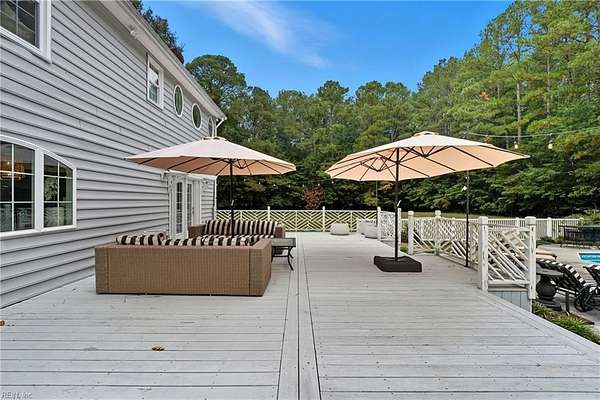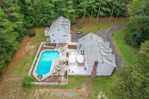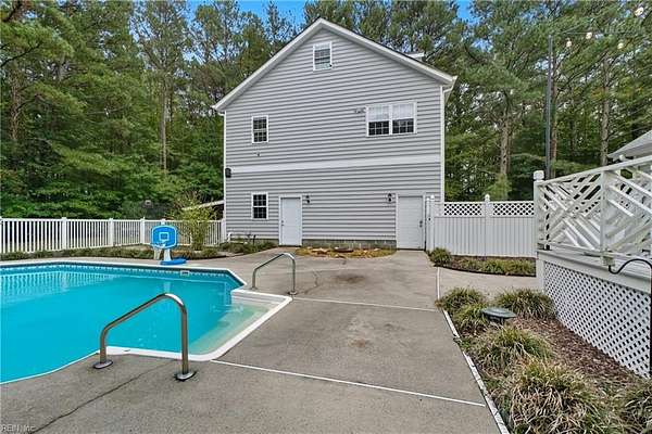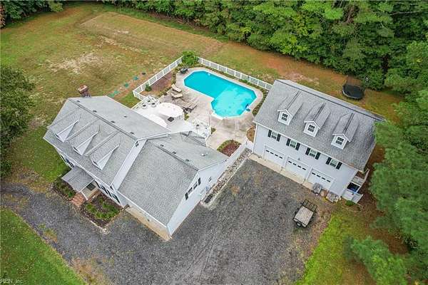 Welcome to 1901 Prince Edward Drive in Chesapeake, VA! This property offers incredible space, privacy, and versatility, situated on a large 2 acre wooded lot with an updated septic system and a beautiful saltwater pool. The main home features 4 bedrooms, 3 baths, and 2,667 sq ft with a 2-car garage and abundant storage. The kitchen is a true showpiece, showcasing white cabinetry with glass accents, expansive countertops, designer pendant lighting, and a large bay window overlooking the pool and serene backyard. The living area flows seamlessly with custom built-ins and abundant natural light. Upstairs you'll find spacious bedrooms, a versatile FROG, and a generous primary suite with a beautifully appointed bath. Outside, enjoy the expansive deck, lush yard, and detached guest house above the 3 car garage with 2 bedrooms, 1 bathroom and full kitchen--great for in-laws, guests, or rental potential. A rare combination of comfort, style, and space in the heart of Chesapeake!