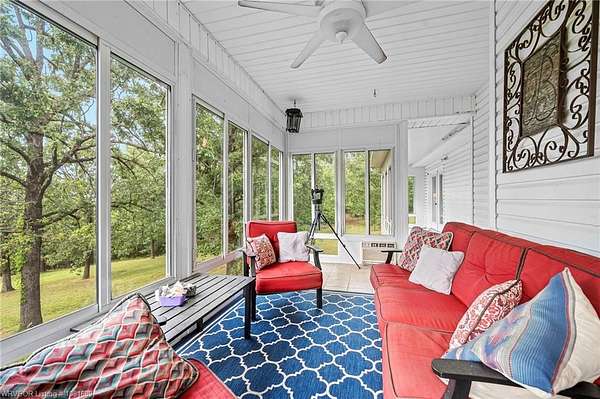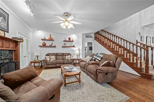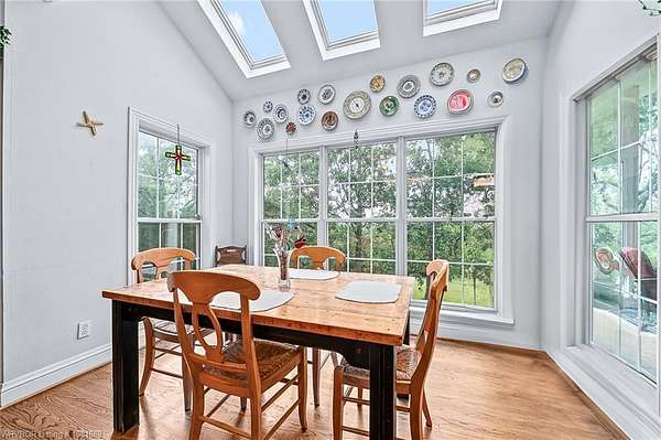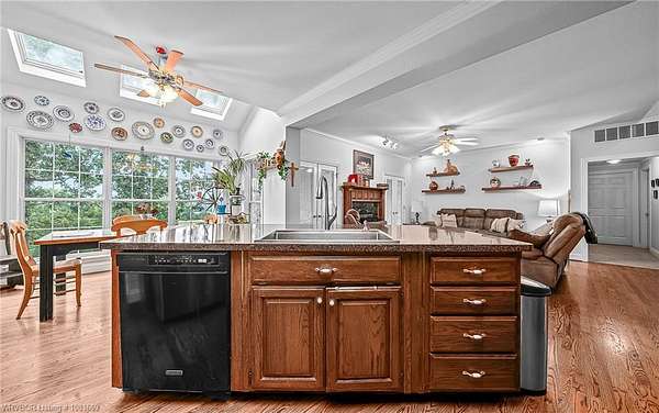 - Blinds, Built-Ins, Cathedral Ceiling, Ceiling Fans, Ceramic Tile Counters, Eat-in-Kitchen, Fireplace, Skylight