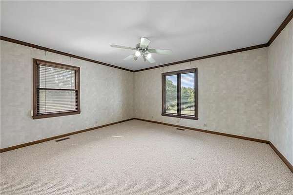 Located just minutes from town and a short drive to Kansas City or KCI Airport, this ridge-top retreat offers panoramic views of nature's beauty along with peace and privacy.