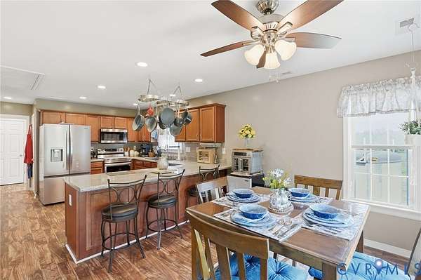 - Bath In Primary Bedroom, Ceiling Fans, Double Vanity, Laminate Counters, Main Level Primary, Recessed Lighting, Separate Formal Dining Room