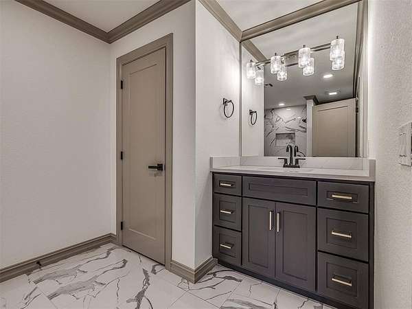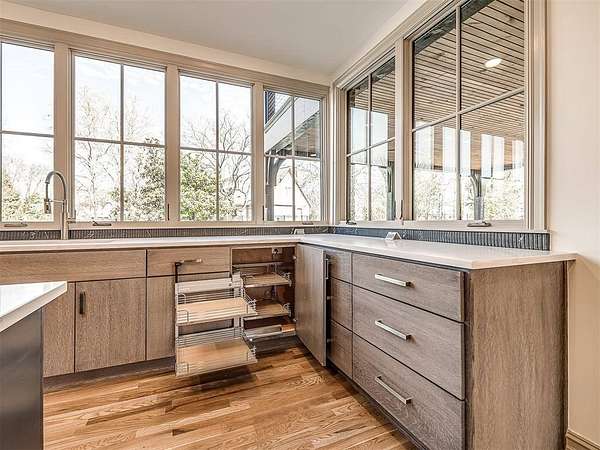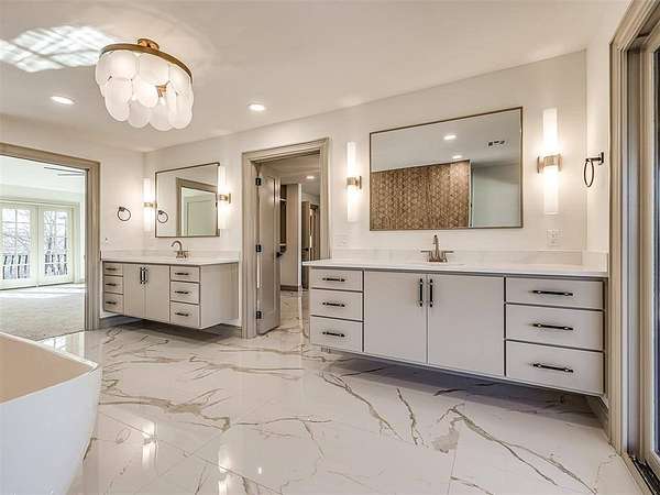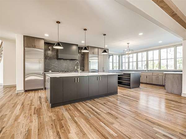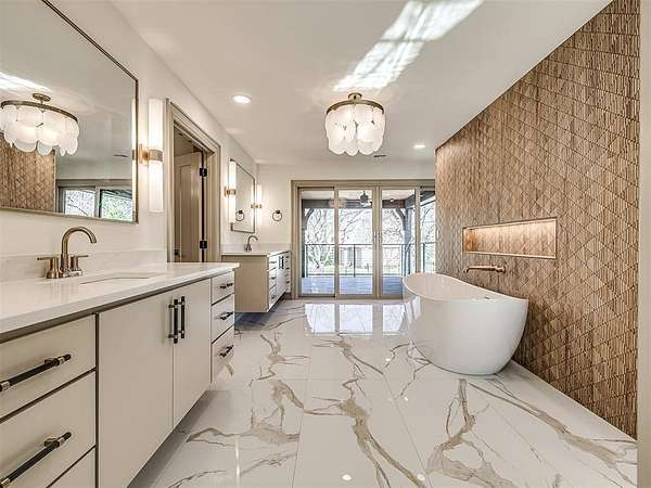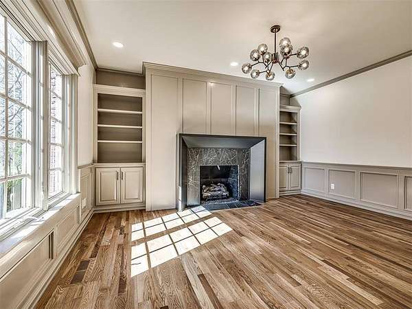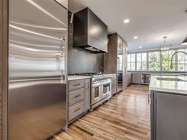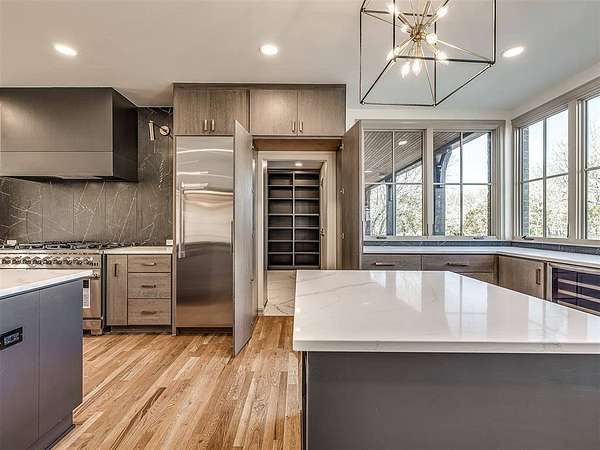 Experience refined living in this completely remodeled, modern-Tudor masterpiece, perfectly positioned in one of the area’s most prestigious neighborhoods. Every detail has been thoughtfully curated to blend timeless architectural charm with elevated contemporary finishes. Designed for both entertaining and everyday luxury, the chef’s kitchen is truly the heart of the home. It features multiple islands, abundant storage, corner cabinets with custom “magic corner” functionality, and a dedicated prep area complete with an additional sink. A hidden butler’s pantry offers even more convenience with its own sink, double oven, microwave, and space for a secondary refrigerator—ideal for hosting on any scale. The kitchen flows seamlessly into the expansive living room and overlooks the covered patio and resort-style backyard. Step outside to your private outdoor retreat. The resurfaced swimming pool is complemented by a newly added hot tub, a stunning waterfall feature, and a tanning deck with built-in jets. Two exterior gas firepit areas create warm ambiance for evening entertaining, all anchored by a covered patio designed for year-round enjoyment. Inside, the thoughtfully designed floor plan offers five bedrooms, three of which include private en-suite bathrooms—providing comfort and privacy for each occupant. The expansive primary suite is a true sanctuary, featuring a private living room or study with a fireplace, a refreshment area, a bedroom-sized walk-in closet with dedicated exercise space and laundry area, and a private balcony retreat. Additional highlights include an oversized three-car garage with epoxy flooring and generous storage space, along with a stately circle drive that enhances both convenience and curb appeal. This is more than a home—it’s a statement of luxury, functionality, and timeless design in one of the community’s most sought-after settings. This is a rare opportunity to own a truly turnkey masterpiece. Schedule your private showing today!