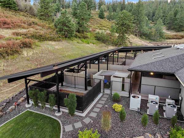 Exceptional opportunity featuring two homes on a combined 56 acres with unmatched versatility for animal lovers, trainers, hobby farmers, or anyone seeking a private retreat. The primary passive home sits on 20 acres and includes a state-of-the-art kennel facility designed for breeding, rescue, or rehabilitation. Highlights include advanced air-filtration, epoxy floors, indoor suites, covered play areas, turfed paddocks, 15 runs, cage banks, and an upper-level food prep/storage area. The main level offers a beautifully finished living space with upscale details throughout. Enjoy 360 degrees views, in-ground pool, and incredible equestrian potential with open space to ride plus direct access to 1,100 acres of Antoine Peak conservation land for hiking, riding, and exploring right from home.The second residence, set on 36 acres, is framed, roofed, painted, and approx. 60% complete-ready for your finishing touches. Property also includes an additional pool and barn. Ask for the full amenities list!