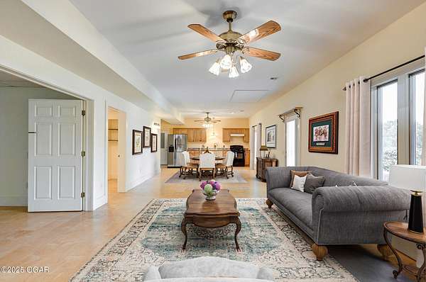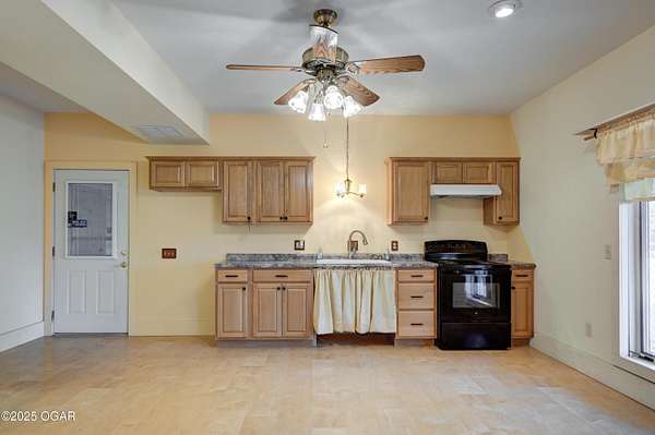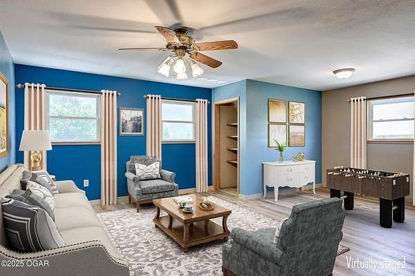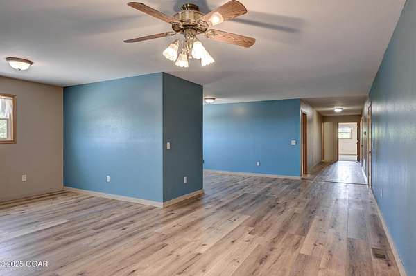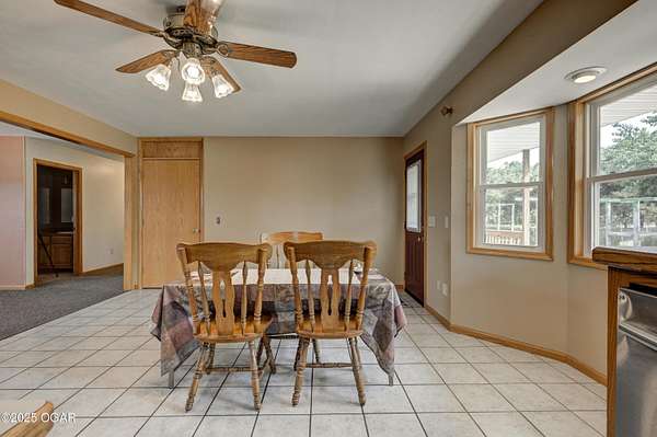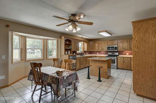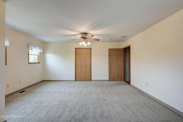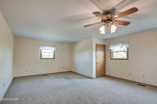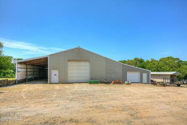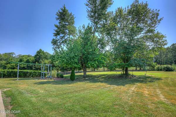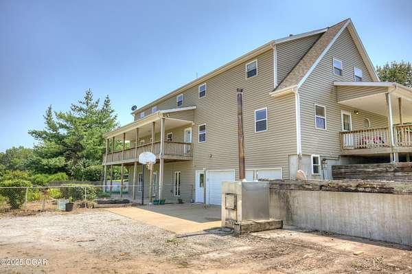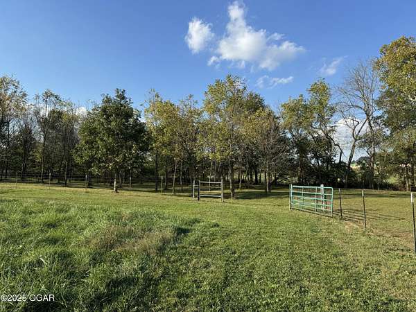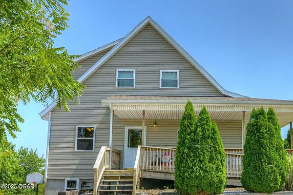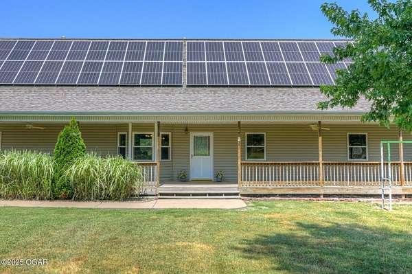 Welcome to a home designed for comfort, connection, and endless possibilities. This 6-bedroom, 4.5-bath, 2-story farmhouse with a walkout basement rests on 10 beautiful acres across from the Fort Crowder Conservation Area in Newton County - offering both privacy and a front-row seat to nature. Inside, spacious rooms flow seamlessly from one to the next. The kitchen is a true gathering place with its center island, abundant cabinetry, pull-out pantry shelves, and a charming view of the wrap-around porch. The main floor features 3 bedrooms, 2 full baths, and an office, including a primary suite with private access to a back deck overlooking the property. Upstairs, you'll find 2 additional bedrooms, a large bonus room, another full bath, and generous storage space. Designed with accessibility in mind, the home includes 36-inch-wide interior doors and an elevator connecting the main floor to the walkout basement. The basement functions as a complete second living space - perfect for an in-law suite or multi-generational living - with its own kitchen, laundry, and a full bath with grab bars and a walk or roll-in shower. Outdoors, the rolling land is partially wooded and divided into 6 fenced pastures, complete with 2 automatic livestock watering systems. A seasonal creek winds through the back of the property, and the outbuildings provide incredible versatility: a chicken coop, 30x50 heated shop, covered RV/storage area, open storage for tools or hay, and a 28x8 storage building. Practical upgrades make life here efficient and worry-free: solar panels keep electric bills low, a Hardy 4H wood stove offers supplemental heat, and 2 new HVAC systems were installed recently: one in 2024 and one in 2025. A generator hookup outside ensures peace of mind during outages. Just across the road, the 2,362-acre Fort Crowder Conservation Area offers hiking and horseback trails, shooting and archery ranges, abundant wildlife, and fields of native warm-season grasses - all just steps from your front porch. From peaceful mornings on the porch to evenings watching the sun set over your land, this property is ready for its next chapter. Call today to schedule your private tour! Some rooms are virtually staged and are labeled accordingly.