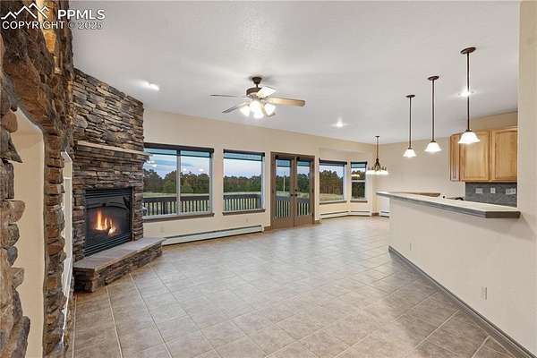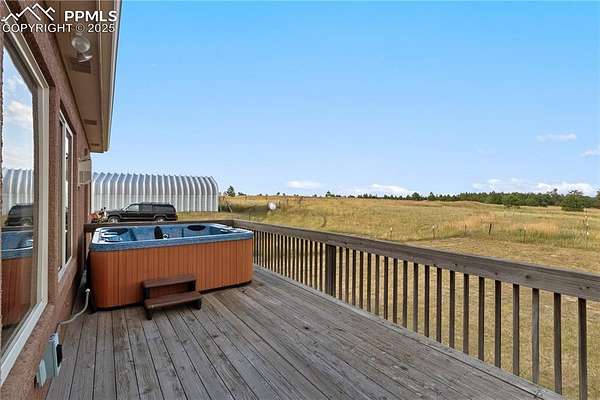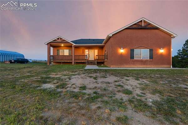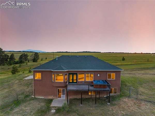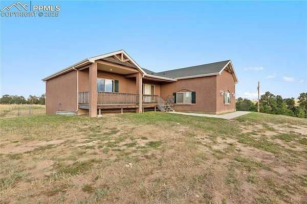 Welcome to your private 40-acre slice of Colorado heaven! This 4-bedroom, 3-bath, 3,710 sq. ft. home blends rustic charm with modern luxury and delivers everything you've been dreaming of. Step inside to an open-concept living room with sleek ceramic flooring, a custom stone feature wall, and a cozy gas fireplace - all flowing seamlessly to your deck where a hot tub and endless views await. The gourmet dining space boasts incredible storage and a custom countertop system, perfect for entertaining. Your spacious main-level master retreat features a massive walk-in closet and a spa-like 5-piece bath with dual sinks, a drop-in soaking tub, and a separate shower. An office/bedroom with French doors adds the perfect work-from-home space, while a walkthrough laundry room with garage access keeps life convenient. The walkout basement is framed and ready to finish - and the best part? All the materials to complete it are included. There's even an ensuite with a private bath, perfect for guests or multi-gen living. Outside, your 40-acre playground includes a barn with electricity, stables, and ample storage - ready for your horses, hobbies, or business ventures. Whether you're looking for peace, privacy, or a place to live your dream ranch lifestyle, this property delivers it all. This isn't just a home - it's your forever getaway.