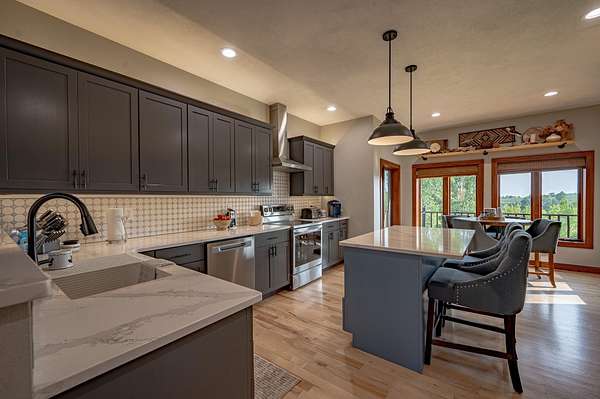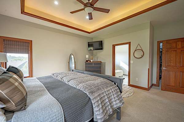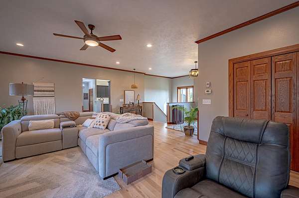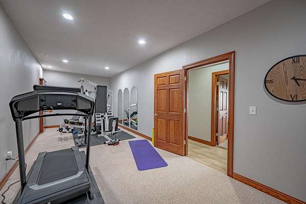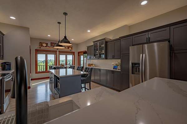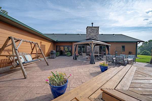 The PRIDE OF OWNERSHIP Shows in this impeccably cared for 5 bedroom, 3 bath Home with attached 3 stall garage PLUS the 40 x 64 Morton Building for all your toys, plus could easily be turned into a living space, with a second floor designed for all kinds of storage!! Where to Begin with this Beautiful Home...upon entering the foyer you'll be drawn into the views - PLUS standing on the deck enjoying the tranquility of the views and privacy! Every part of this Home has been touched with care - the Newly redone kitchen with functional island, NEW cabinets, NEW quartz countertops and cupboard space galore, eat-in area just off the patio and pool area! Open to the living room, complete with fireplace, and crown molding. Just off the foyer, you will find a large home office with french doors! The large Main bedroom with lit tray ceiling, main bath with walk-in shower, double bowl vanity, plus a walk-in closet!!! Just down the hall, off the kitchen, you will find two additional bedrooms tastefully decorated, a 2nd full bath with double bowl vanity and the main floor laundry room just down the hall! Onto the walk out lower level, fully finished basement with a large family room with wet bar, loads with windows with beautiful views! The basement is equipped with a large workout room, in addition to two large bedrooms and full bath! This Home is one you won't want to leave!! The attached 3 stall garage with loads of space! The outdoor patio with above ground pool and deck surrounding it, plus a large shed for all the gardening tools and pool accessories too - making it a wonderful place to entertain - AND call HOME!!!
