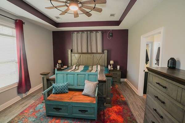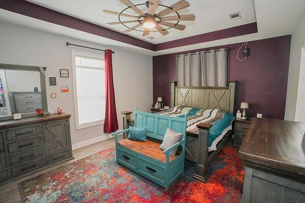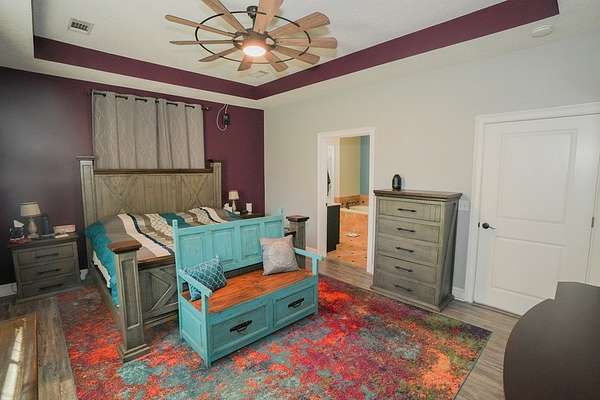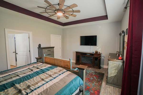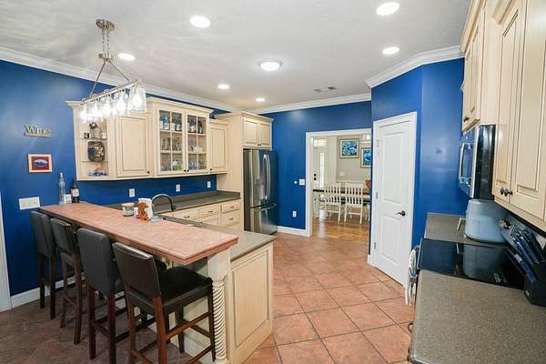 - Alarm System, Eat-In Kitchen, Pantry, Separate Shower, Specialty Ceilings, Whirlpool Tub