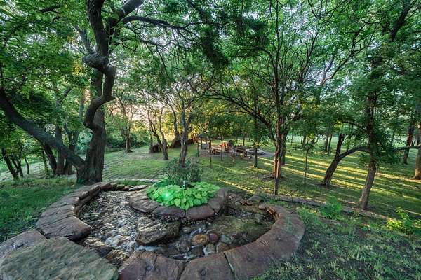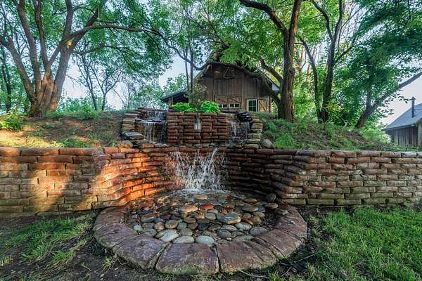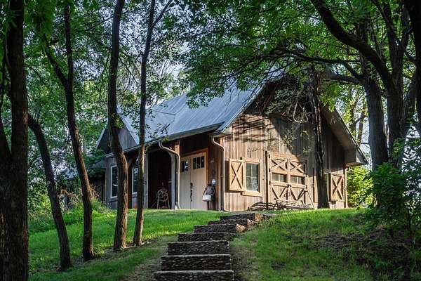 THE BARN - Originally constructed with a woodshop in mind, before it was complete, this building took on a life of its own and became a second living area that is truly a truly unique entertainment space. Prior to entering the building, you are struck with it's cottage appearance and its location high on a knoll, surrounded by a thick canopy of trees. The area outside screams evening party with a large firepit surrounded by custom exterior wooden furniture, a large landscaped waterfall and colorful exterior lighting in the trees. There is even an old, stand alone outhouse with modern facilities available for guests near the firepit. It is just a great outdoor space.