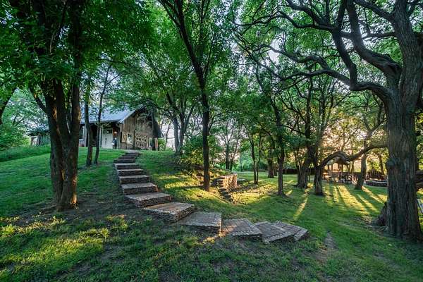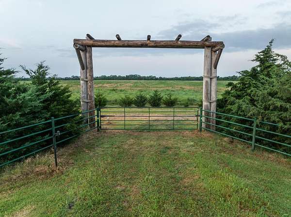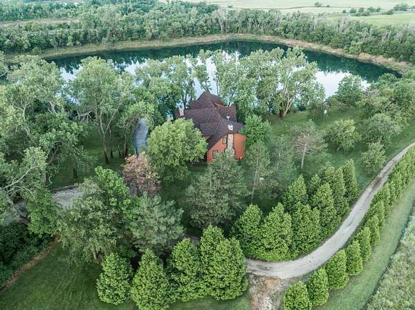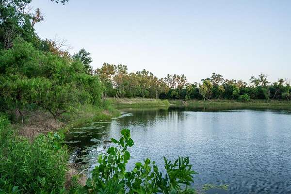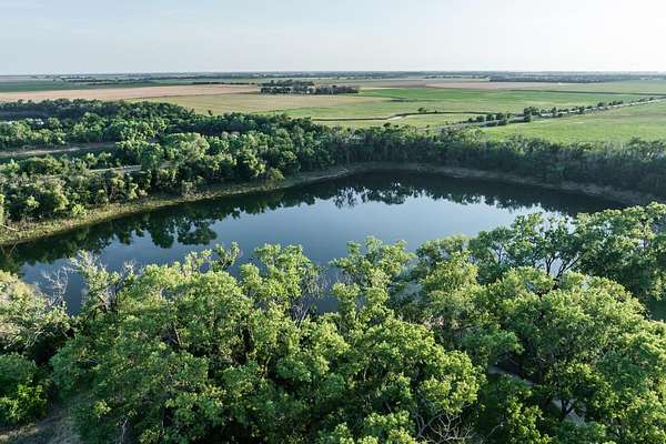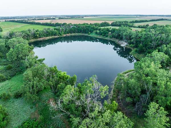 The recreation options are highlighted by a impossible to miss 8 acre private lake. This lake is a former sandpit sculpted 6 decades ago and is approximately 40 feet deep with crystal clean water. The lake receives its water from springs apprising from the underground eques beds. There are no incoming streams to cloud or pollute the water. Imagine spending an afternoon fishing on your boat and being able to see fish several fathoms down under the surface. The lake is stocked with trophy bass, crappie, catfish and perch. And, it has been owner-designated as "catch and release" for a number of decades, providing both great numbers, but also great size to each of the species on-site. There have been many days in which anglers have caught upward of 75 to 100 fish in a day. The lake bank is surrounded by towering cottonwoods and other deciduous trees that help to create a wind block which gives rise to what many have referred to as "Calm Water Lake". The undergrowth cascades down the banks and into the water creating great structure for the fish. Private lakes in Kansas are hard to come by, and this one is a showstopper.