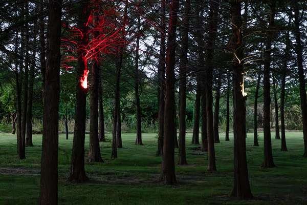The landscape is also full of antique tractors and implements strategically placed around the property, some of which are adorned with light-scaping hardware to produce an evening time showpiece.