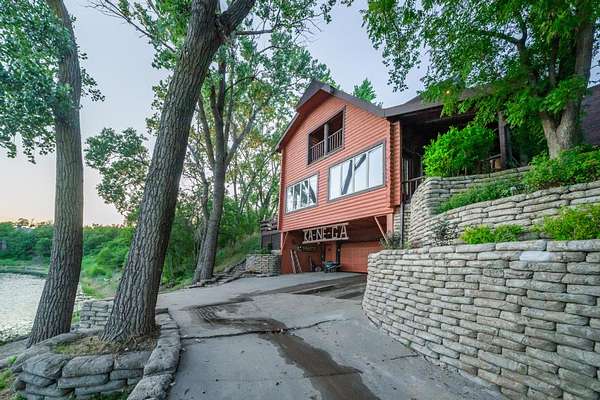 In addition to providing protection from storms, the basement is also the garage and features an epoxy floor and is the perfect spot to keep ATVs and a boat. The large two car, overhead doors open toward the lake and make for easy access to the boat ramp and sandy beach area. Guest comfort and entertainment are a staple throughout this property.