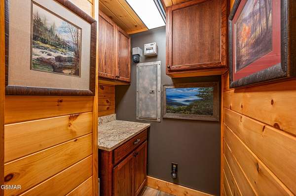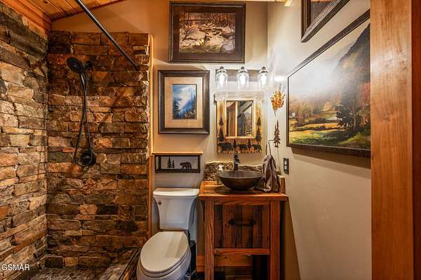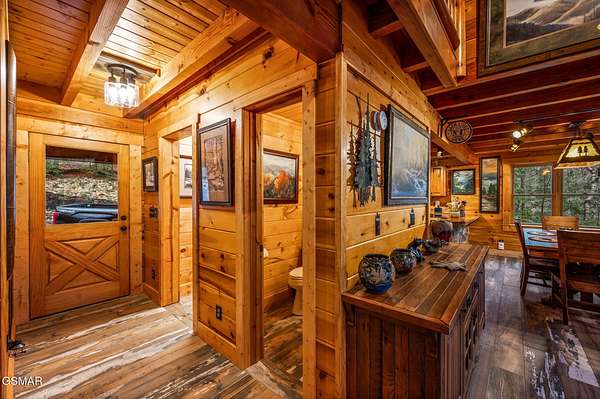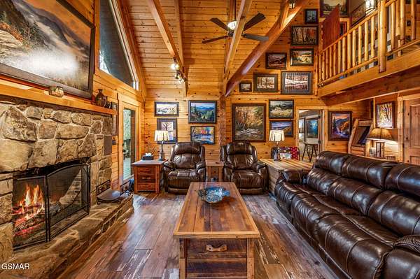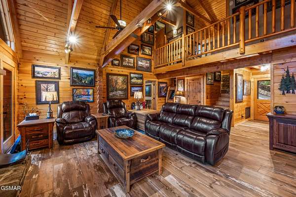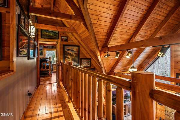 This 3 bedroom, 3.5 bathroom log cabin, nearly 2,200 sq ft in size, situated on a private 5-acre parcel, in peaceful Walland, offers a perfect mix of rustic charm and modern amenities. It's conveniently close to the Great Smoky Mountains National Park, Townsend, Wears Valley, along with many other attractions, making it ideal for a permanent home, or second home. Recent upgrades have been made to enhance both its functionality and appeal. The exterior received a fresh look in 2021 with new oil stain and oversized bronze gutters, along with a new, durable roof. Inside, the living room boasts high, vaulted ceilings, exposed beams, and a large fireplace. This open space leads into a kitchen/dining area, equipped with new appliances and tile flooring. The bedrooms upstairs feature solid Acacia wood floors. All bathrooms have been remodeled, featuring custom showers, unique vanities, and new fittings. The cabin has also been equipped with a new high-efficiency HVAC system, full home Generac generator, a new water heater, and an upgraded water filtration system. Outdoor living is a highlight here, with a newly stained deck overlooking a peaceful mountain setting. The property includes about 1 mile of private hiking trails, flagstone paths, and well-maintained planting areas. Inside, new paint and stained walls, along with updated electrical fixtures, add to the cabin's welcoming atmosphere. Storage has been thoughtfully addressed with a dehumidified and encapsulated basement, along with clever use of space, including an outdoor storage area under the hot tub. The community offers a central area for garbage pick up and a community pond. With its blend of natural beauty and thoughtful upgrades, this cabin is a cozy, yet luxurious mountain retreat. This home and property is a dream come true!