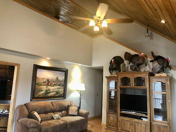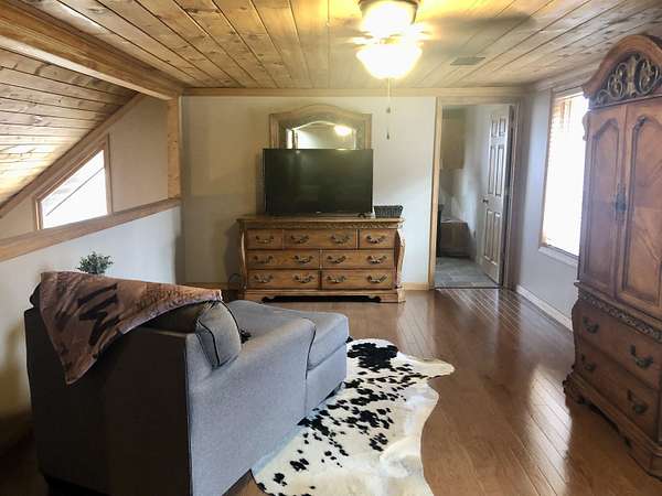This stunning property features 28.86 rolling acres, fully fenced and ideal for livestock, complete with two picturesque ponds for added functionality and beauty. The acreage includes: A 20x30 barn with a lean-to, perfect for storage or animal shelter. A 30x40 insulated shop, equipped with electricity, water, and a floor drain, offering excellent versatility. The 2624 sq. ft. home is thoughtfully designed for comfort and functionality: Main Level: Accessible through a 2-car garage, this level boasts a spacious kitchen with a pantry, laundry room, living room, bathroom, and a bedroom. A large deck off the kitchen provides a perfect space for entertaining, complemented by large windows offering breathtaking views. Second Level: Features a primary suite with a luxurious walk-in tile shower and a soaker tub, creating a private retreat. Walk-out Finished Basement: Equipped with a pellet stove, this level includes a large room with a kitchenette, a bathroom, a safe room, an additional room, and abundant storage.