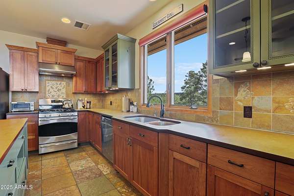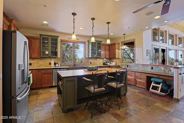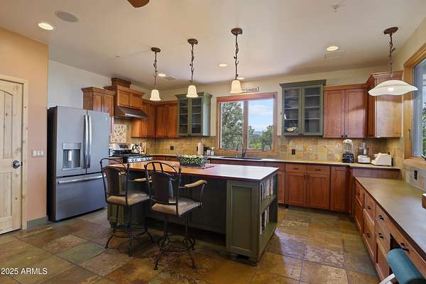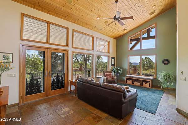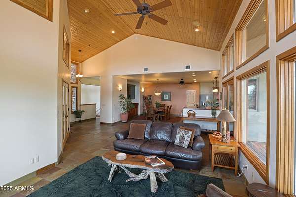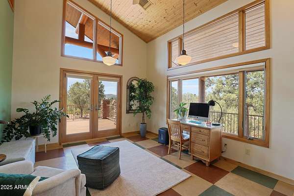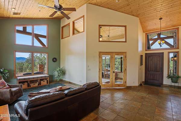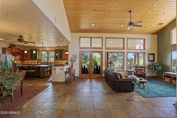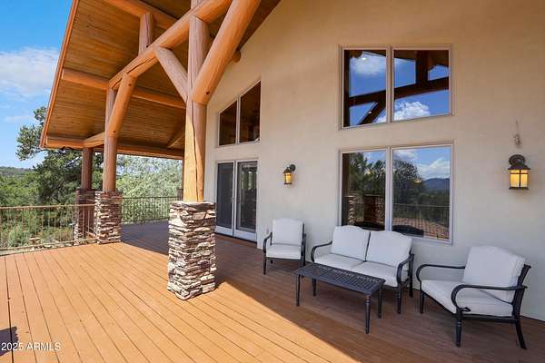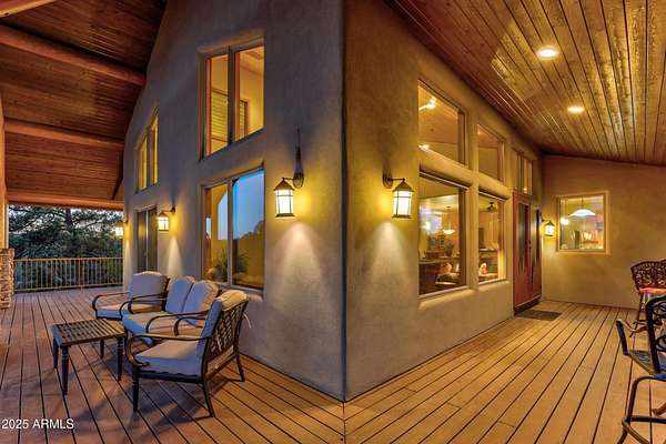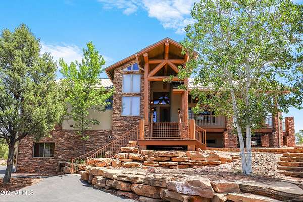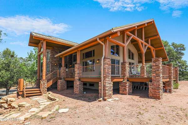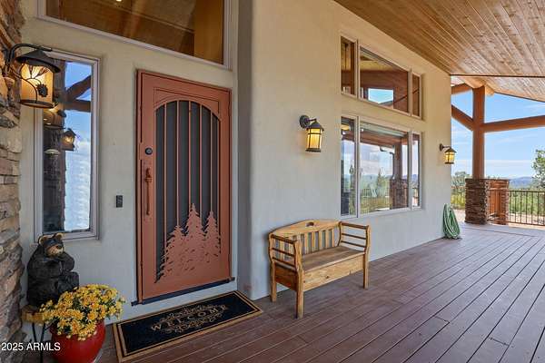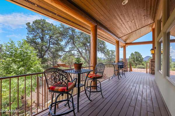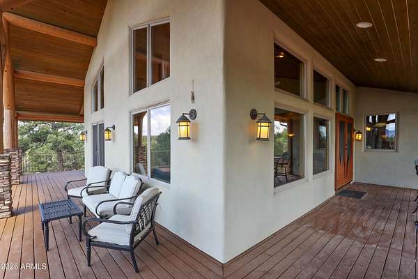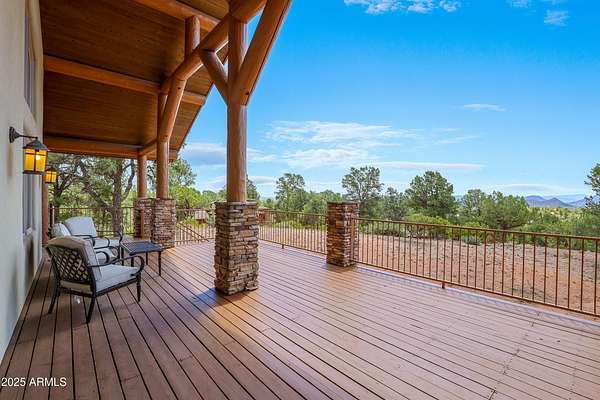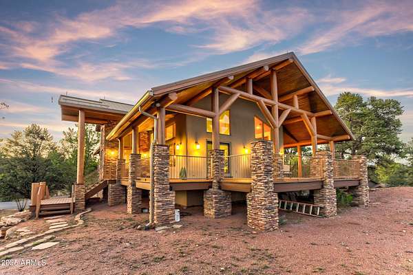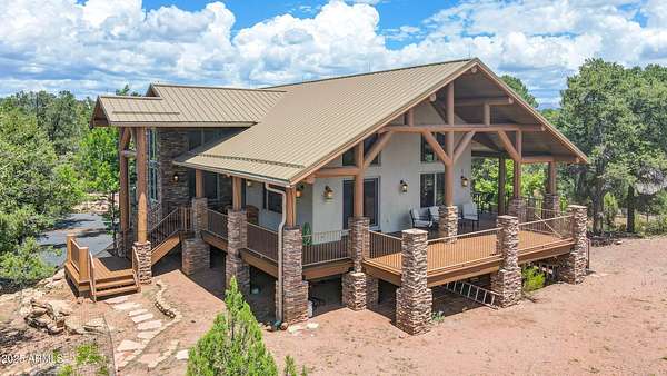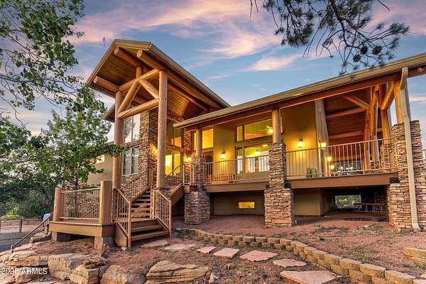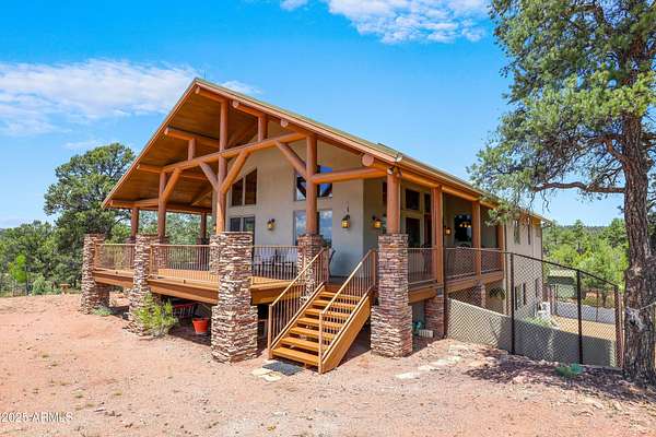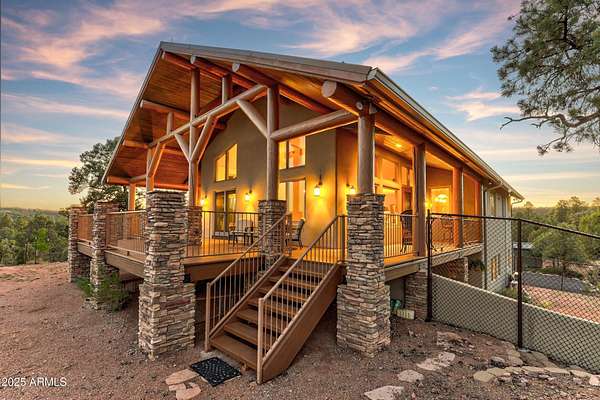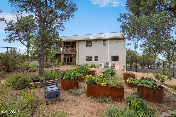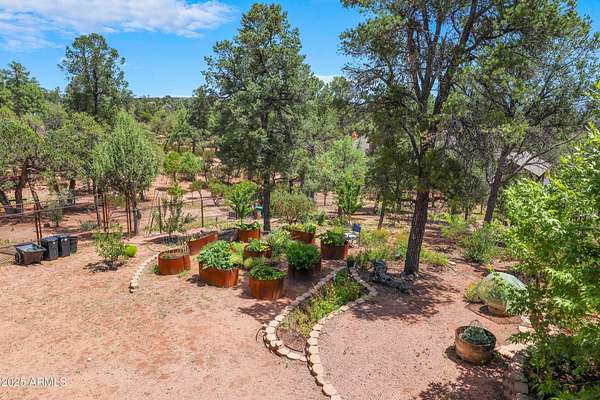 Nestled at the prestigious northern edge of Payson, Arizona, 1904 N Underwood Court is a rare and extraordinary estate that defines once-in-a-lifetime living. This meticulously crafted nearly 3,600 sq ft, 4-bedroom, 3-bath masterpiece sits on 2.76 acres at the end of the coveted ''The Woods of Payson'' subdivision, perched atop the highest knoll with commanding 360-degree views. Adjoining the Tonto National Forest, this single-owner horse property offers direct access to endless riding trails, dark skies for unparalleled stargazing, and a serene connection to nature that discerning buyers will recognize as irreplaceable. To the north, the majestic Mogollon Rim stretches across a hundred-mile canvas, a breathtaking backdrop framed by the Tonto National Forest. To the south, the rugged Granite Dells mountains inspire awe and adventure. Whether savoring the fragrance of blooming herbs from the downstairs patio or gazing out from the expansive upstairs wraparound deck complete with piped propane for effortless BBQ grilling the views are nothing short of spectacular. Built from the ground up by a couple who raised their children in a nurturing, nature-rich environment, this 20-year-old home exudes timeless care and quality. The property is a sustainable gardener's paradise, featuring a professionally designed organic garden and permaculture landscape crafted by a renowned permaculture designer specializing in regenerative land management. Integrated tree crops and expertly engineered earthworks enhance water infiltration and reduce runoff on the sloped terrain, stabilizing soil and fostering long-term ecosystem health. This resilient design, fed by a private well with a sophisticated irrigation system, supports an abundance of fruit trees and permaculture berms, creating a self-sustaining oasis that harmonizes with natural systems. The vast majority of the estate is fenced to keep elk at bay, with additional fencing safeguarding the backyard garden, ensuring both security and serenity. Inside, the home radiates warmth and elegance with rich cherry wood kitchen cabinets, light-toned countertops, and modern upgrades including newer A/C units, a new dishwasher, and an upgraded ''On Demand'' hot water heater with recirculating pump. The metal roof, gutters, and water spigots thoughtfully placed around the property add practicality to its charm. Every detail, from the professionally landscaped grounds to the inviting interior, reflects a labor of love and pride of ownership. This mostly fenced estate is a sanctuary for those who value privacy, craftsmanship, and a deep connection to the land. Whether you're an equestrian dreaming of riding into the forest, a gardener seeking a sustainable legacy, or a family craving space and inspiration, this property delivers. With its unmatched location, thoughtful permaculture design, and pristine condition, 1904 N Underwood Court is a rare opportunity to own a regenerative estate that will captivate and inspire for generations. Don't let this extraordinary property pass you by opportunities like this are as fleeting as the scent of rain. SEE VIDEO IN PHOTO TAB
