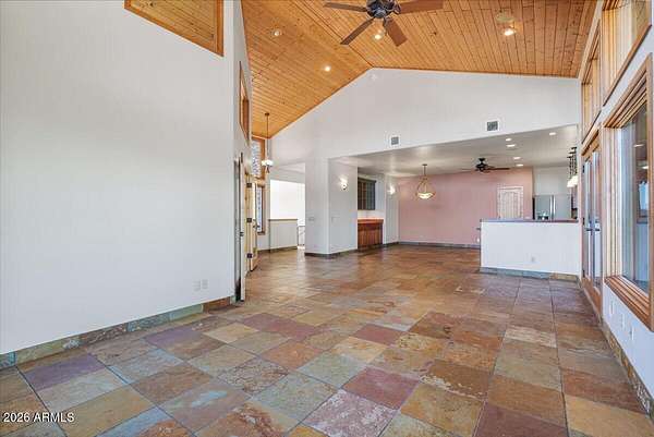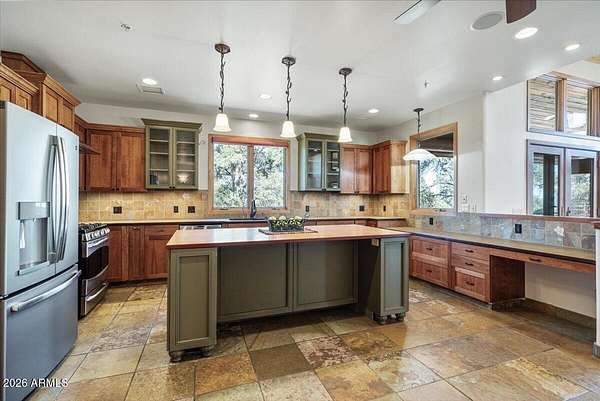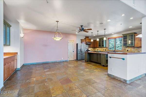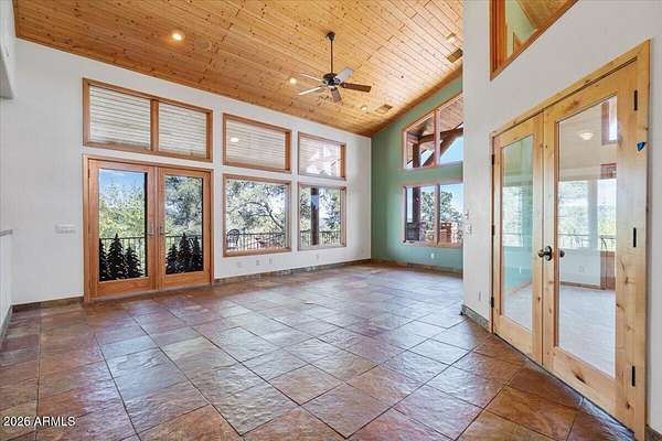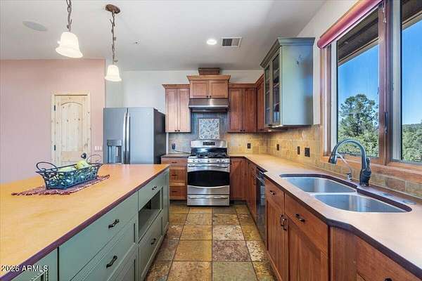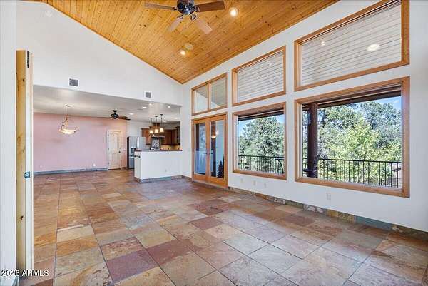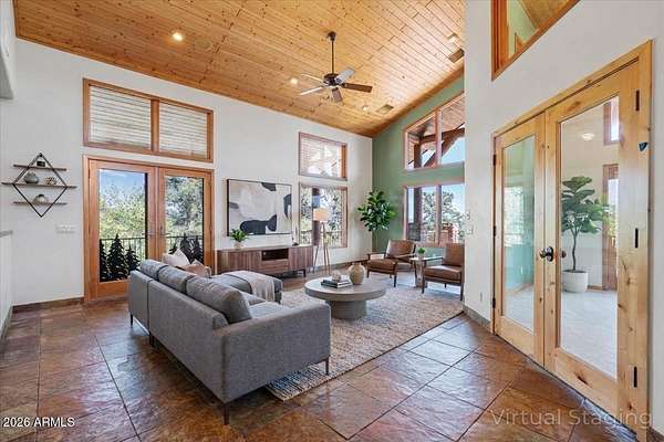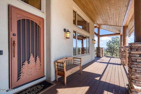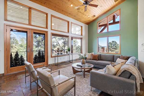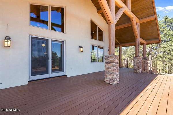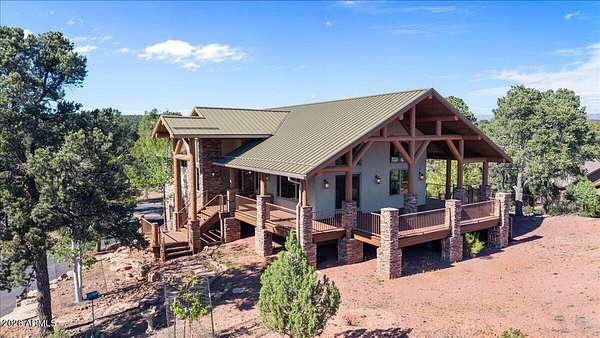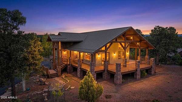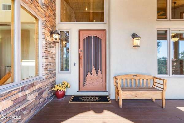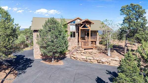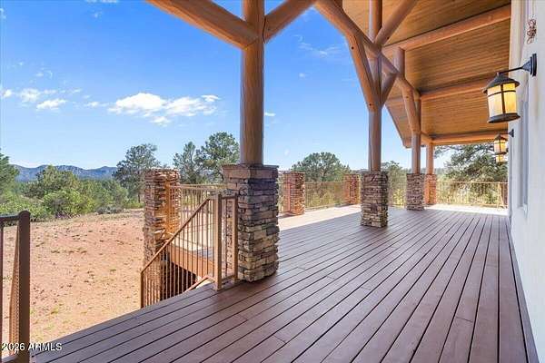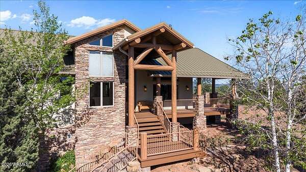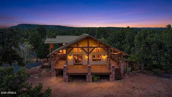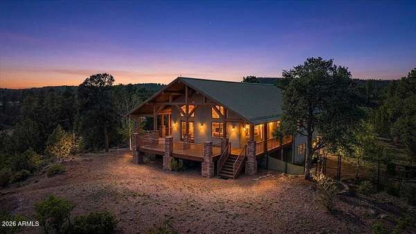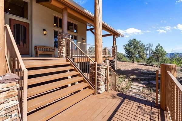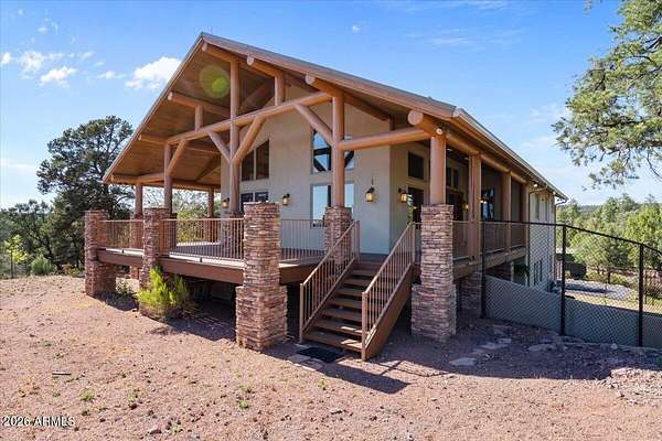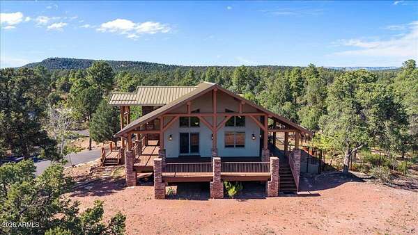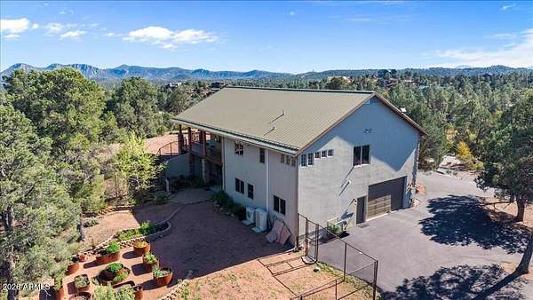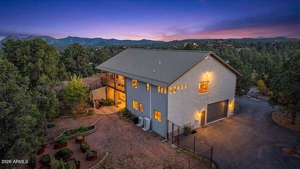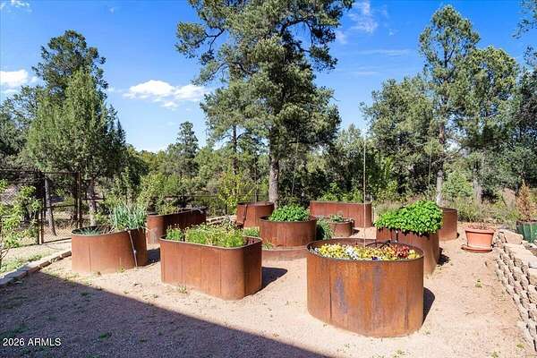 Perched at the prestigious northern edge of Payson, where the land opens wide and the sky stretches endlessly, this is not simply a home--it is a private, regenerative estate designed for a life deeply connected to nature, beauty, and possibility. Set on 2.76 remarkably usable acres at the end of a quiet cul-de-sac in The Woods of Payson, this nearly 3,600 sq ft, 4-bedroom, 3-bath residence commands its position atop one of the area's most desirable knolls--offering sweeping 360-degree views that few properties can rival. To the north, the iconic Mogollon Rim unfolds across a breathtaking horizon. To the south, the rugged beauty of the Granite Dells creates a dramatic and ever-changing landscape. Beyond your boundary line lies direct access to the vast Tonto National Forest--offering endless riding trails, hiking, and some of the darkest, most star-filled skies in Arizona. What truly sets this property apart... is the land itself. This is a rare, largely flat parcel--a true anomaly in this terrain--opening the door to equestrian use, expansion, additional structures, or simply the freedom to create your vision without limitation. Whether you dream of horses, a workshop, guest quarters, or wide-open space to breathe... this property delivers. And then... there is the garden. Thoughtfully and professionally designed through the principles of permaculture and regenerative land stewardship, this is far more than landscaping--it is a living, thriving ecosystem. Carefully engineered earthworks and swales slow, capture, and retain water, enriching the soil and creating long-term sustainability. A private well feeds a sophisticated irrigation system that supports an abundant mix of fruit trees, herbs, and perennial plantings--designed to work with nature, not against it. Here, mornings begin with the scent of herbs on the breeze, and the rhythm of the seasons becomes part of daily life. Inside, the home reflects that same level of intention and care. Warm cherry cabinetry anchors the kitchen, complemented by Richlite sustainable countertops and a layout designed for both everyday living and gathering. Expansive windows frame the surrounding landscape, bringing the outdoors in at every turn. Upstairs, a wraparound deck invites you to take in the views from every angle while the covered patio below creates a natural extension of the home into the landscape. Evenings are elevated by a wired outdoor speaker system, setting the tone for gatherings under the stars. Modern comfort meets rural freedom with the home wired for Starlink high-speed internet, with equipment included--offering reliable connectivity without sacrificing privacy or setting. Behind the scenes, thoughtful infrastructure enhances both function and peace of mind. A durable metal roof with integrated snow stops is built for the seasons, while a lightning rod protection system adds an extra layer of security--an intentional feature for properties of this caliber and elevation. A Nuvo whole-home water filtration system ensures clean, high-quality water throughout, supporting both everyday living and the long-term sustainability of the home. Recent upgrades, including newer A/C units, updated appliances, and an on-demand hot water system with recirculating pump, further elevate the property's efficiency and livability. The estate is predominantly fenced, with additional protection around the garden to preserve its integrity--creating a sense of privacy, security, and peaceful seclusion. Built and lovingly maintained by its original owner, this home carries a rare and tangible sense of care, intention, and legacy. This is for the buyer who understands that true luxury is not just square footage or finishes-- it is space, freedom, sustainability, and connection. A place where you can ride directly into the forest. Grow your own food. Stay connected when you choose--and completely unplug when you don't. And create a life that feels both grounded and expansive. Opportunities like