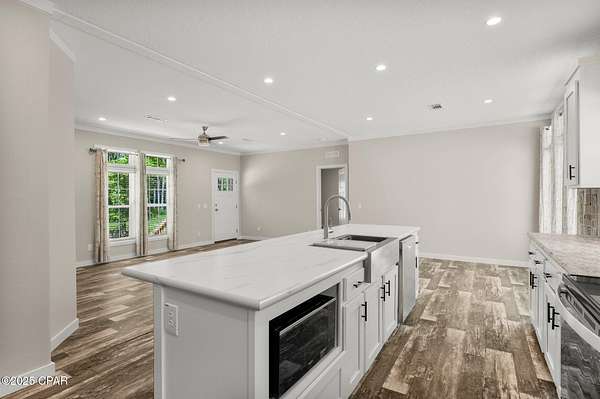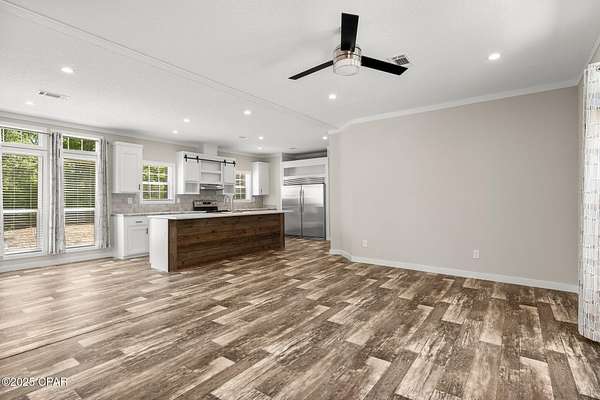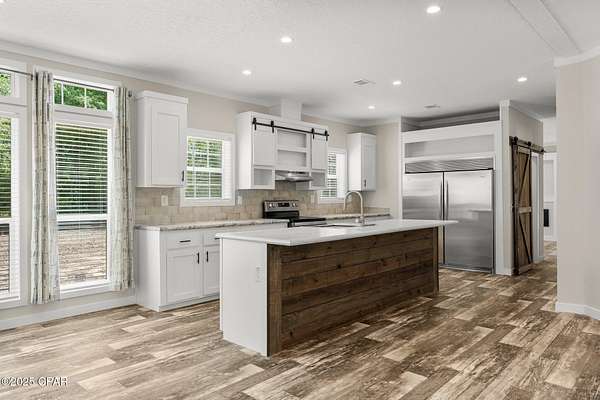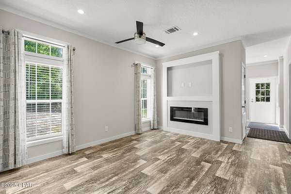 - Fireplace, Kitchen Island, Split Bedrooms, Window Treatments