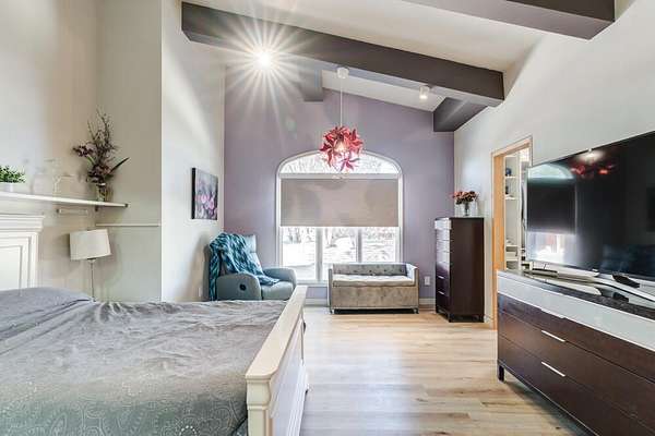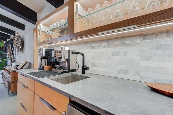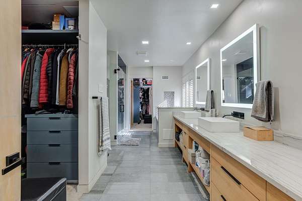 - Beamed Ceilings, Bookcases, Breakfast Bar, Built-In Features, Chandelier, Double Vanity, Eat-In Kitchen, Entrance Foyer, Granite Counters, High Ceilings, High Speed Internet, His and Hers Closets, Kitchen Island, Natural Woodwork, Open Floorplan, Pantry, Quartz Counters, Recessed Lighting, Smart Home, Smart Light(s), Smart Thermostat, Soaking Tub, Solid Surface Counters, Stone Counters, Walk-In Closet(s), Wired For Data, Wood Counters