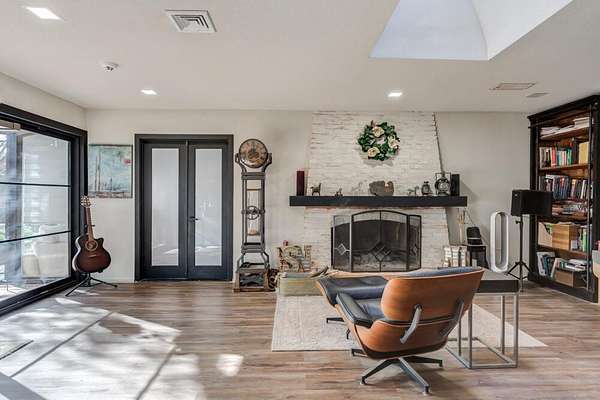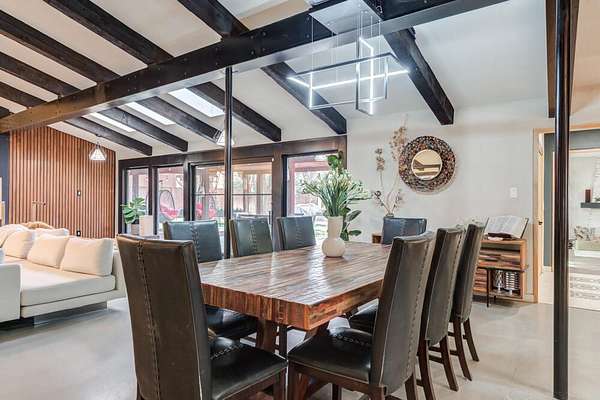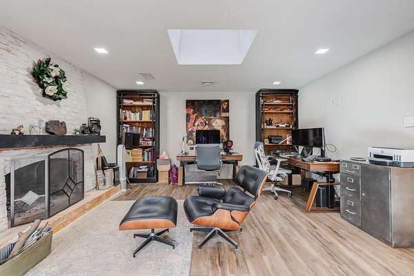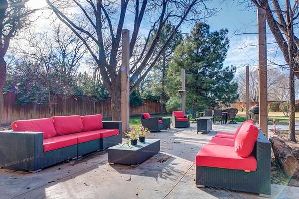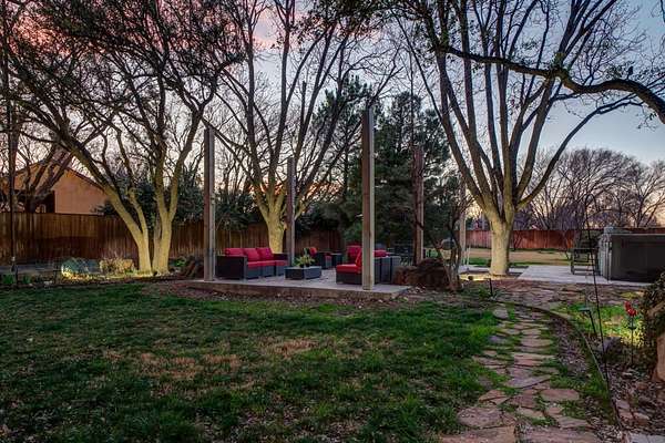 Tucked beneath the soaring trees of Bobalet Heights in North Lubbock, this sleek, beautifully renovated home blends modern architectural elements with warm, natural details throughout. From the moment you arrive, the outstanding curb appeal sets the tone for the spacious and thoughtfully designed interior. Inside, sprawling living spaces make entertaining effortless, while natural wood accents, striking beams, and skylights add character and warmth. Huge windows flood the home with natural light, highlighting the clean lines and modern finishes that define the design. The large kitchen is a true centerpiece, featuring luxury finishes, clean lines, and high-end appliances--perfectly designed for both everyday living and hosting guests. The home offers four bedrooms, three bathrooms, a dedicated office, and a versatile bonus room off the primary suite--perfect for a private sitting area, workout space, or nursery. Step outside to a massive backyard shaded by mature trees, complete with covered patios and plenty of room to relax, entertain, or play. With its blend of style, space, and a prime North Lubbock location, this home truly stands out. Call today to see it for yourself!