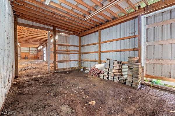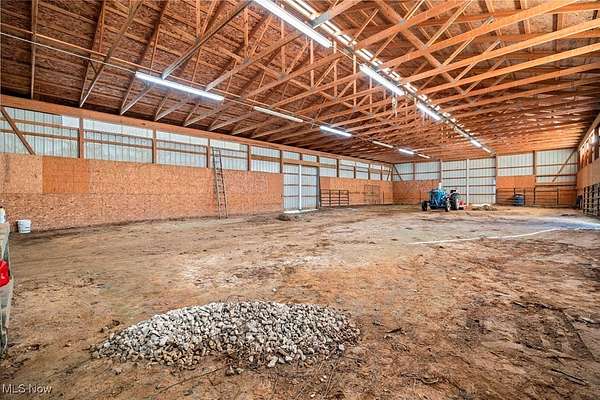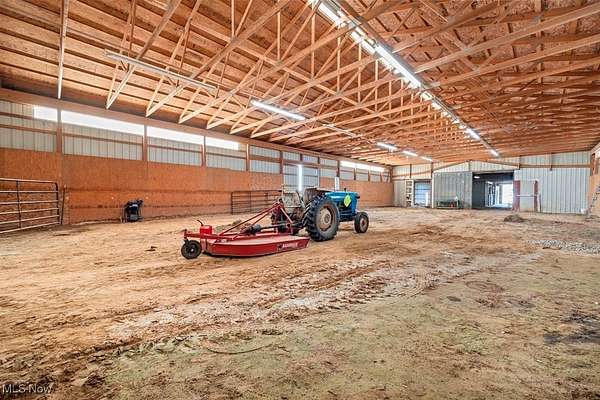 Situated on over 8 acres in Lagrange Township this 3 bedroom, 1 and 1/2 bath ranch home is set up for the Equestrian enthusiast! The home features a large eat in kitchen, living room with a woodburning fireplace, large first floor utility room and has natural gas heat! Updates include new aeration System in 2025, Roof approximately 5 years old, vinyl siding and most of the windows have been updated. There is a horse barn with 2 stalls, tack room, wash room and a 46' by 96' indoor arena. There is room to add additional horse stalls. The arena barn is clear span so could be used for a lot of different uses. There is a pond on the property and approximately 1 and 1/2 acres of woods. Keystone Schools and just 10 minutes to 10/480. Immediate possession!