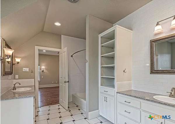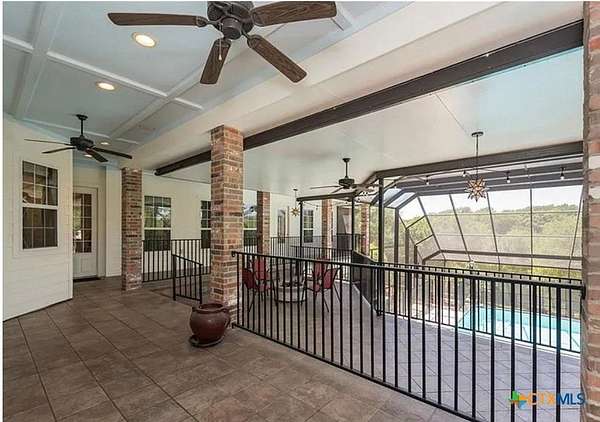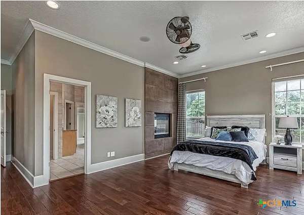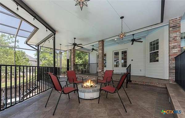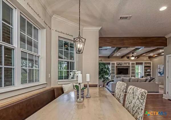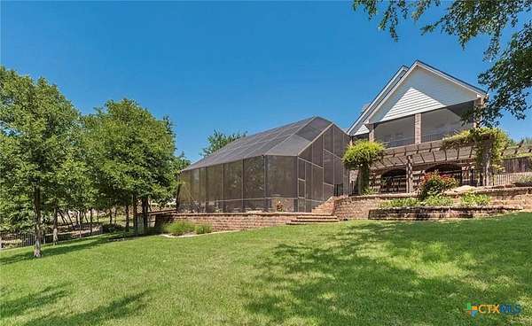 EXQUISITELY MAINTAINED ESTATE HOME IN BELTON'S RIVER PLACE! Sitting beautifully on 1.69 acres, this 6 bdrm, 4 full/2 half bath residence is the perfect family home! W/gorgeous hickory wood floors, custom builtins & tall ceilings, its classic design includes 2 living areas on main floor & additional living on 2nd. The formal dining w/gas fireplace is spacious w/easy access to the beautiful & efficient island kitchen equipped w/Bosch appliances, gas cooktop, & 2 dishwashers. The master retreat boasts of its own private balcony as well as pool area access, 2 sided gas fireplace, & spa like bath w/heated floors & towel drawer, & his/hers closets. The 4 upstairs bedrooms are oversized w/amazing closet space & builtins. W/L utility room on each floor each w/dumbwaiter access plus an additional craft room, there is no end to the work & storage space this home provides. Stunning 3 story screen pool covering maintains the perfect sun exposure while keeping the pool, patios & outdoor kitchen clean with an secluded family fun retreat!