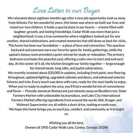 MOVE-IN READY || || MASTER ON MAIN || ||NEW ROOF || || 1.7 ACRE YARD || || NEW WATER HEATER || || HVAC WITH NEW MOTOR || || NEW FLOORS || || NEW LIGHT FIXTURES || || APP CONTROLLED GARAGE DOOR OPENER || || UPGRADED CABINETS || || BRIGHT OPEN RANCH DESIGN || || 15 MINUTES TO AIRPORT & DOWNTOWN ATLANTA || SELLER WILL REPLACE CARPET WITH ACCEPTABLE OFFER || What You'll See Step inside and see the light pour through this beautifully refreshed ranch home, where HIGH CEILINGS and BRIGHT OPEN SPACES create an inviting sense of air and freedom. Every detail shines-from the NEW FLOORS to the UPGRADED CABINETS, DOORS, and MIRROR FRAMES. The freshly PAINTED INTERIOR reflects modern elegance, while exterior TOUCH-UPS and NEW LIGHT FIXTURES add curb appeal. Out back, the 1.7 ACRE FENCED YARD stretches wide and private-ready for kids, pets, or your next backyard gathering. What You'll Hear Enjoy the quiet calm of a PEACEFUL NEIGHBORHOOD, where the sounds of nature replace city noise. Inside, you'll appreciate the gentle hum of a home with a NEWLY SERVICED HVAC, NEW ROOF, and NEW WATER HEATER-all recent upgrades ensuring a whisper-quiet, efficient living experience. You'll hear the laughter of family echo softly through the OPEN FLOORPLAN, the soundtrack to life's best moments. What You'll Feel Feel the comfort of knowing every major system has been thoughtfully updated-over $20,000 IN RECENT IMPROVEMENTS completed within the last two months. Step barefoot onto NEW FLOORING that feels solid and smooth beneath your feet. Relax in your MASTER ON MAIN, where convenience meets calm. Outside, the spacious fenced yard offers freedom and security, giving you room to breathe, unwind, and truly feel at home. What You'll Experience From morning coffee on your refreshed FRONT PORCH to evenings under the stars, this home offers the best of both worlds-quiet suburban living just 15 MINUTES FROM HARTSFIELD AIRPORT AND DOWNTOWN ATLANTA. The SECURED SUBDIVISION WITH CAMERA MONITORING offers peace of mind, while the HOME WARRANTY ensures lasting protection. Here, you'll experience what it means to move into a home that's not just updated-it's ready to embrace your next chapter.