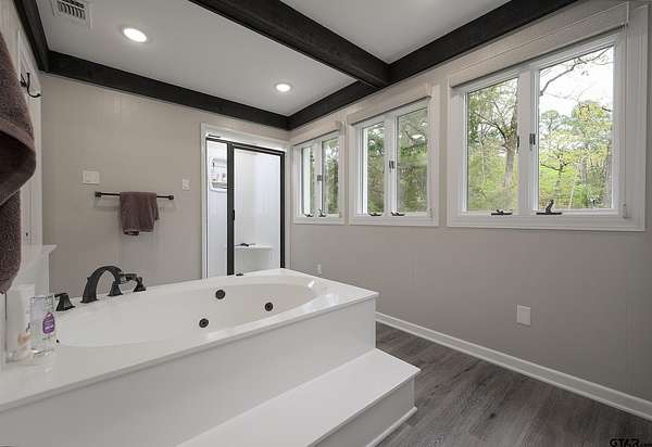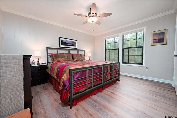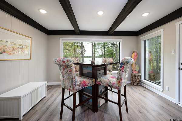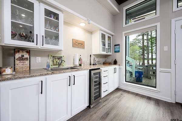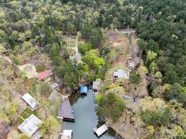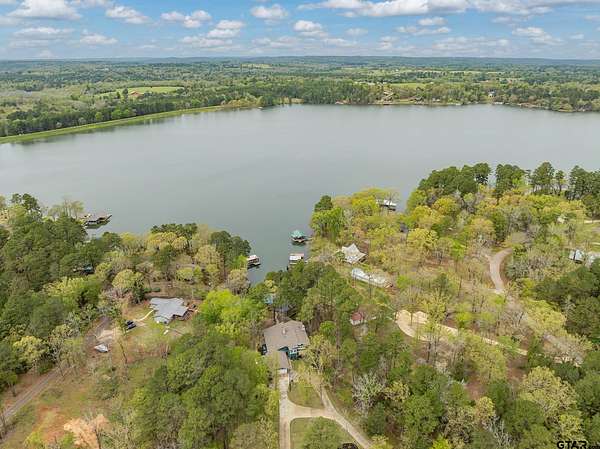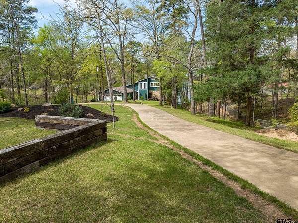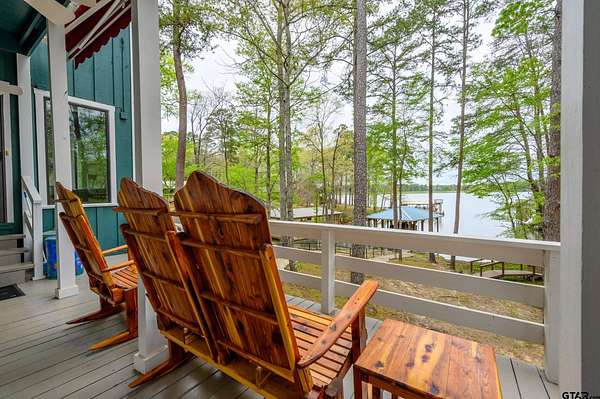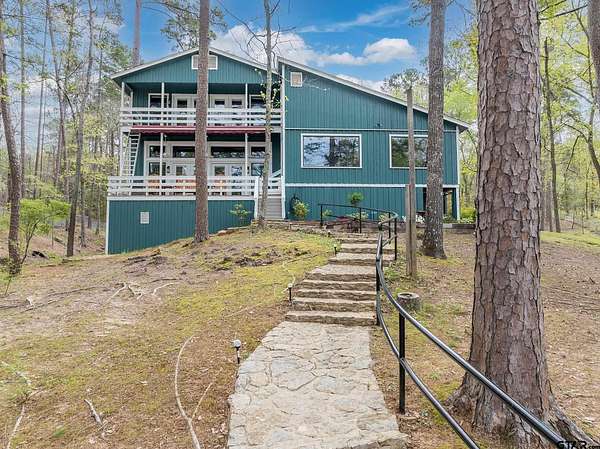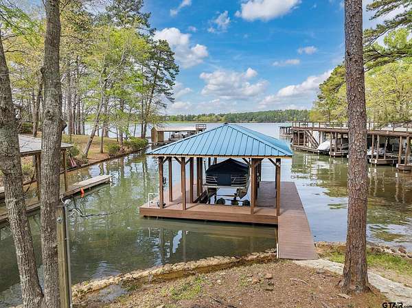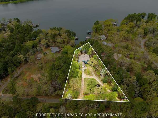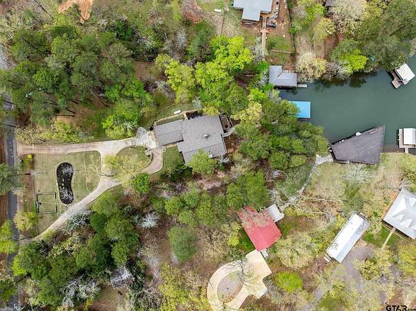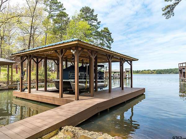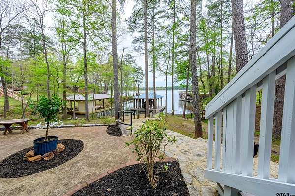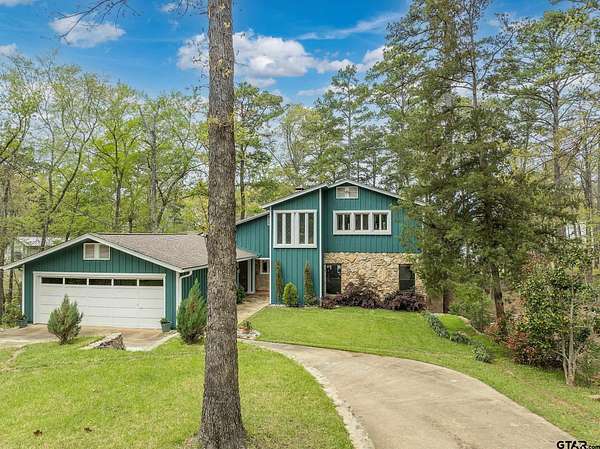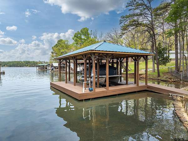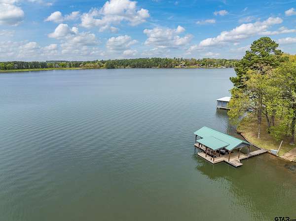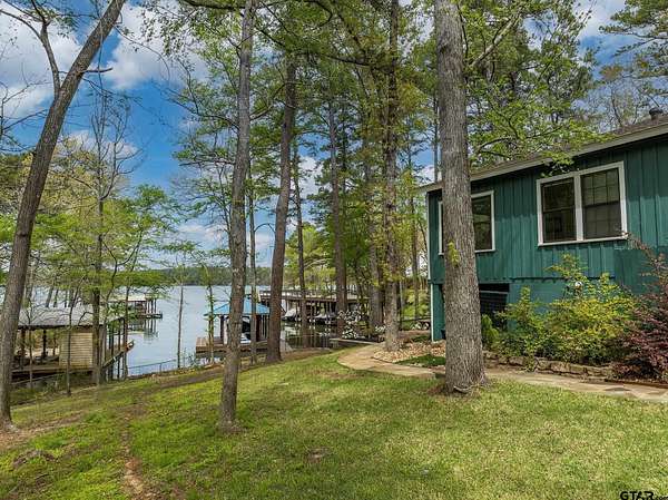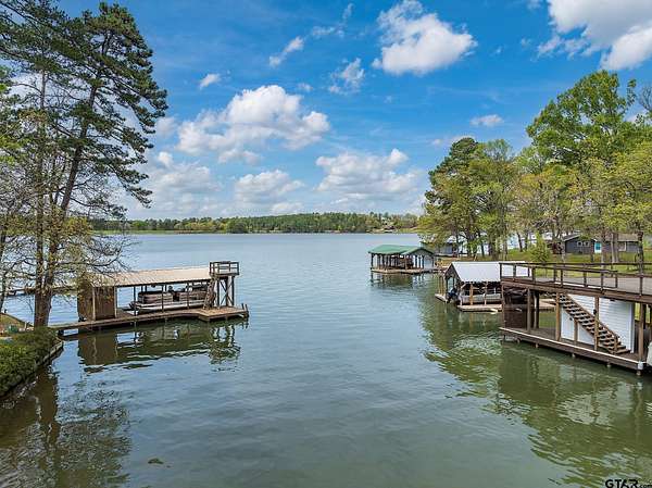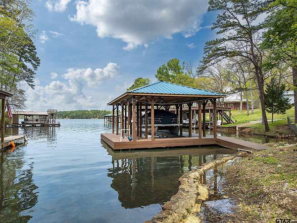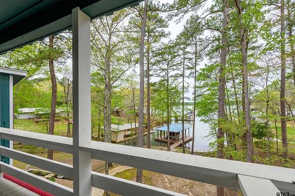 Major Price Improvement due to family relocation needs! Escape to the beauty of East Texas with this waterfront retreat on Lake Jacksonville! Situated on a tree shaded lot with an impressive 183' of shoreline, this 3 bedroom, 2 bath home embodies the perfect blend of comfort & luxury. The property is fully fenced & secured by gated entrances, ensuring both privacy & peace of mind. A graceful concrete circle drive welcomes you, leading to the entrance of this idyllic lakeside property. The 3975 sq. ft. home's recent updates include exterior & interior doors, luxury vinyl plank, windows, completely updated bathrooms & kitchen, electric panels, light fixtures, roller shade window coverings, water heaters, fresh paint inside & out, gutter guards & new sprinkler system for beautifully landscaped yard, complete with zoysia sod! Step inside & be greeted by restored brick floors & large great room complete with a gas log fireplace & a captivating wall of windows that showcase breathtaking views of the serene lake. French doors open to deck lakeside, with the option of a retractable awning. Dining area & living area are combined for ease of entertaining & enjoyment with friends & family. The beautifully updated kitchen and cozy keeping room w/FP are the heart of the home. Indulge in the beauty of nature from the comfort of the sunroom, surrounded by walls of picture windows that bathe the space in natural light while offering vistas of the picturesque landscape. HUGE master bedroom suite upstairs (can be converted to bunk room) has 3 closets & opens to private deck with amazing lake views. Tons of storage w/ 2 rooms off garage & walk-in attic. Rain or shine, rest assured knowing that a Generac generator is ready to provide power, allowing you to relax and enjoy the comforts of home no matter the weather. A boathouse built in 2021, set back from main lake wave action, provides easy access to fishing, boating, kayaking, & more! Embrace the tranquility lakeside living brings!