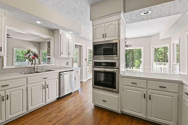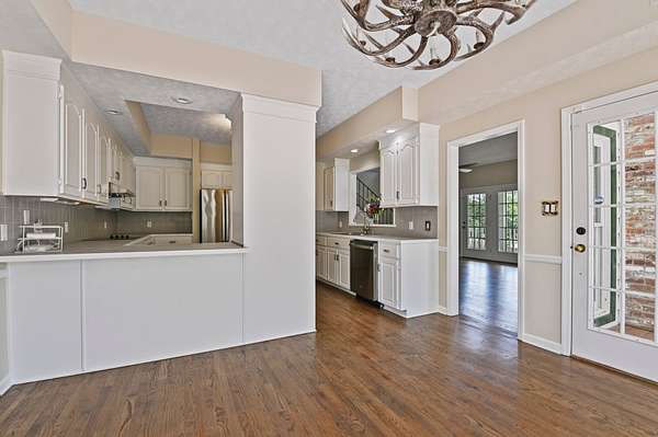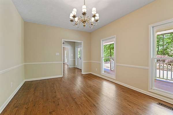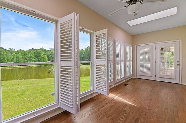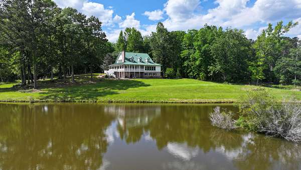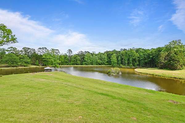 Down a scenic, tree-lined private drive approximately 300 yards long, you'll find a spacious 5-bedroom, 4-bathroom home designed for both comfortable living and grand entertaining. Step out onto the back porch and take in panoramic views of the property's centerpiece--a serene 4-acre pond just steps away from the house. Whether enjoying your morning coffee or winding down in the evening, the peaceful water views provide a truly tranquil setting.