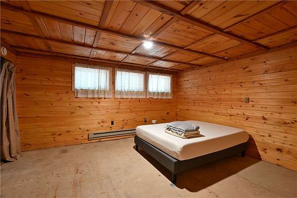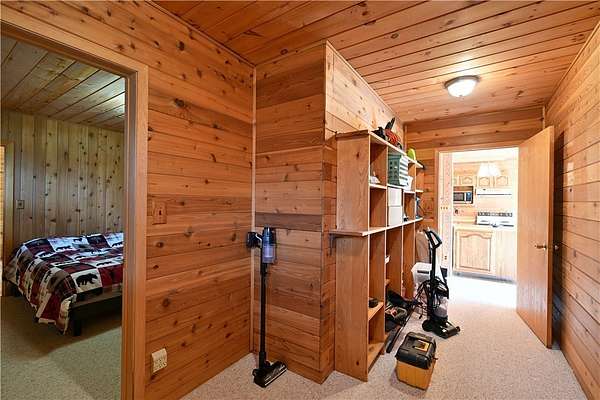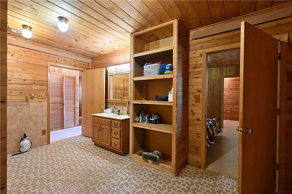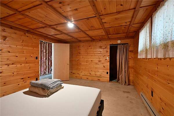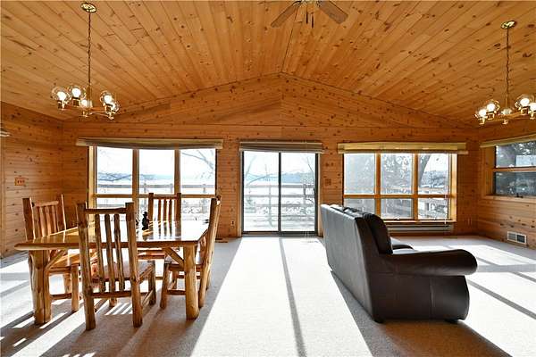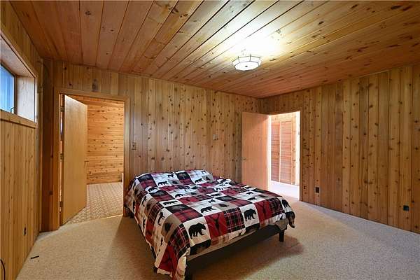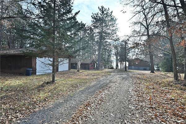 Escape to your own lakeside retreat with this charming 3-bedroom, 1-bath home set on 2.6 wooded acres and offering 166 feet of coveted south-facing frontage on the crystal-clear waters of Middle Eau Claire Lake. Designed for year-round enjoyment, the main level features 1,536 sq. ft. of open living space highlighted by warm tongue-and-groove woodwork, expansive lake views, and a wrap-around deck perfect for relaxing, entertaining, or taking in the serene Northwoods setting. The walk-out lower level includes two partially finished bedrooms and a large family room, offering excellent potential for expanded living space just steps from the shoreline. A 24x32 detached garage and a matching 24x32 bunkhouse provide generous space for guests, hobbies, or storage. Whether you're boating, swimming, or unwinding by the firepit, this property captures the best of Northwoods living. A rare opportunity to own a private, peaceful escape on the Eau Claire Lakes chain-schedule your tour today.