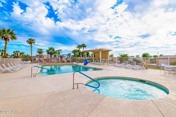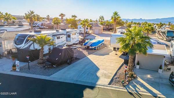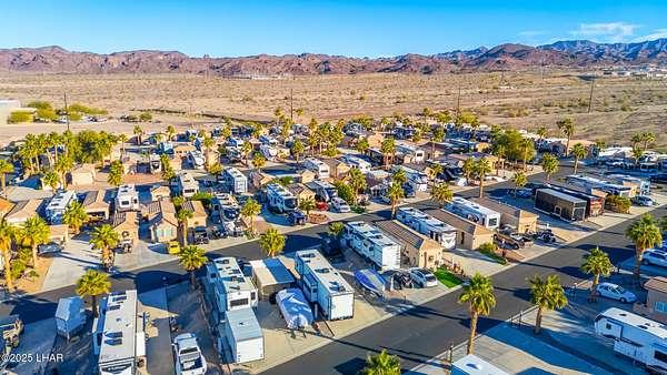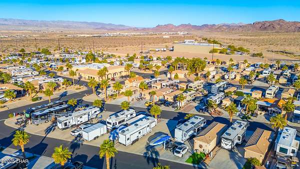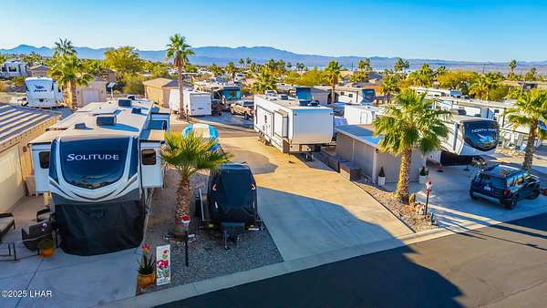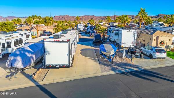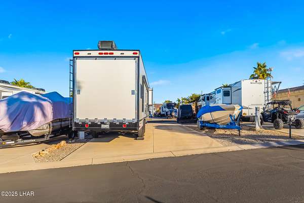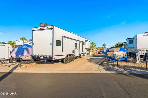 Est $1,045/moRare 75' deep pull-through lot, one of only a handful in the Havasu RV Resort. Any type of park-conforming RV is allowed on this lot, such as class A, C, and 5th wheel. The resort itself features a 9-hole putting course, bocce ball, billiards, pickleball courts, two pools and spas, clubhouse, activity center, fitness center, and all sorts of events throughout the year. This is a deeded property, therefore no space rent.