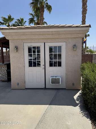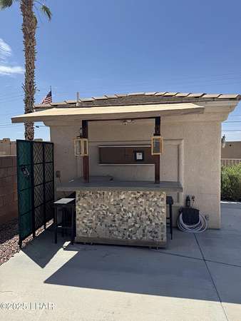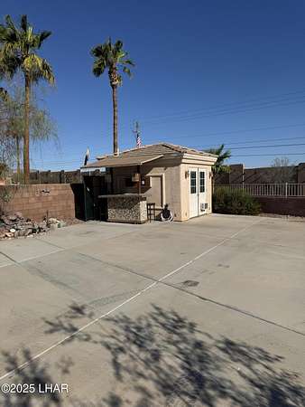 Financing available!!! Owner will possibly Carry!!!!! Seller will look at all offers!!!!!!!! Welcome to the Havasu RV Resort in Lake Havasu City, one of the finest in the area. Lot 1, conveniently located next to the front gate, offers a block wall for privacy on one side and a trailer on the other. It features a private 9x11 Casita it has plumbing for a sink, hot water heater, and cabinets. Owner is leaving a stackable washer and dryer and the concrete bar, bar chairs, and two umbrella's. This particular RV lot can accommodates a class A, 5h wheel and super C class. The RV park's office and clubhouse are just a short walk away. The clubhouse boasts a spacious room with a large kitchen, two stoves, and refrigerators, along with a cozy sitting area with couches and a fireplace. There are numerous tables for dining and recreation. Also a Billiard room and 2 large out door pools and spa area's. Additional amenities include a laundry room, shower area, and four bocce ball courts. The second clubhouse offers another laundry room, showers, and a fitness center, along with a second pool area. HOA pays for sewer and trash. Gated community with private security and cameras.