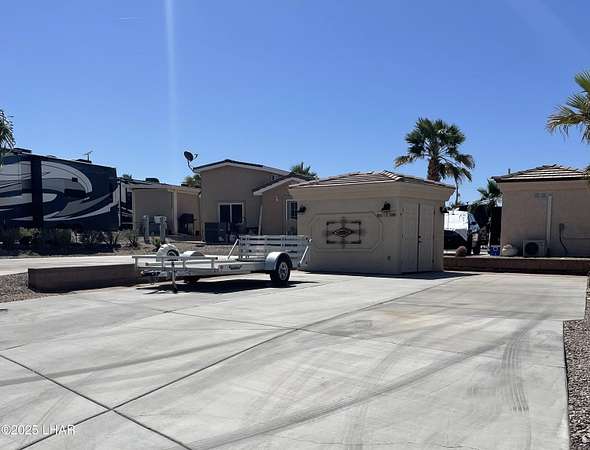 Wait till you see this darling she shed, man cave, casita. It is so darn cute. It hosts a range/oven, washer/dryer, water softener, water heater, r/o system, toilet, nice big sink, counter, cupboards & a fridge. Come park your RV, (10 years or newer w/25' or more of living space) on this wonderful lot w/ample parking for 3 additional vehicles & still have plenty of space to entertain. Lot faces north in this gated resort w/deeded lots, paved streets, street lights, clubhouse, activity center, 2 pools, 2 spas, fitness center, 2 laundry facilities, 9 holes of putt-putt, putting green, bocce ball, horseshoes, pickleball, pool table, poker tables, all sorts of card games, wide variety of arts & crafts, i.e. quilting, painting, beading, golf, razor riding groups, pistol shooting group, corn hole, dance & exercise groups & several own boats w/boating quite nearby. Dances weekly w/happy hour. Entertainment by the resorts very own band! Line dance classes for all levels, more activities than you can take advantage of. Additional resort parties w/exceptional outside bands used for many occasions. Movie nights w/hot dogs, drinks & popcorn. 2 Pets welcome. Make offer & come enjoy the resort.