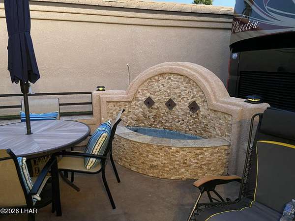 Est $2,768/moIf you know, you know. This is one of the nicest fully built out Phase 3 lots in the park. First rate materials and appliances, water features, peace and calm. Located in the exclusive Class A Motorcoach only section of the park, there is also one of the park water features (babbling brook sort of thing) at the rear of the lot. If your coach is a 45', its just a smidge too long to fit, unless you make some kind of modification... but anything 44' or less will fit.