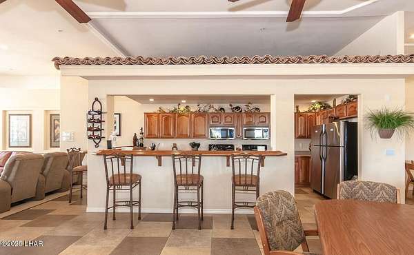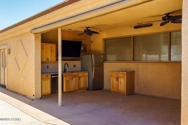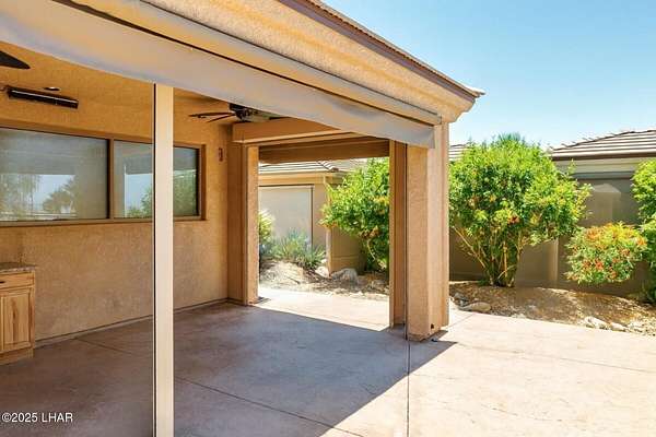 Welcome to Havasu RV Resort-Lake Havasu's premier gated community offering lush landscaped grounds and outstanding amenities. Settle into lot 336 with its updated casita featuring a stylish 3/4 bath, washer, dryer, water softener, tile floors, mini split, and flexible space for relaxing or entertaining. Outdoor living shines in the covered ramada with new granite counters, abundant cabinets, large screen TV, fridge, heaters and motorized shades for year-round comfort. Enjoy two sparkling pools, two clubhouses, fitness center, dog park and an active social schedule. This deeded lot promises luxury, community, and fun-your perfect desert retreat awaits.
