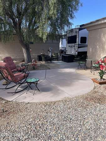 Extra large lot & beautiful large patio area & tree! Lot accommodates an RV & 3 of your other vehicles. (RV to be 10 years or newer or pass an inspection. No shorter than 25ft of living area.) This gorgeous lot hosts a casita, a/c, shower, toilet, sink cupboards & seating. Ramada is screened & will open to accommodate your golf cart or razor for summer storage. Lot is longer than most lots & has babbling brook & big shade tree make it a beautiful area for dining. There is In-ground irrigation for plants. Soft water to casita & your RV. Resort has a club house, activity center, 2 pools, 2 spas, 2 laundry areas, fitness center & many activities, in a gated resort w/deeded lots, paved street & street lights. There are 9 holes of putt-putt & putting green, bocce ball, horseshoes, pickleball, pool table, poker tables, card games of all types & sorts of arts & crafts, i.e. quilting, painting, beading, golf, razor riding groups, pistol shooting, corn hole, dances, dance lessons, exercise groups & several own boats. Dance week to the resorts own band. There is so much more for you to enjoy in this gorgeous resort w/all the wonderful people. Please make an offer.