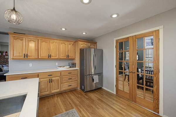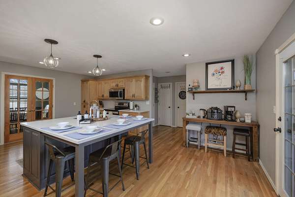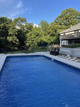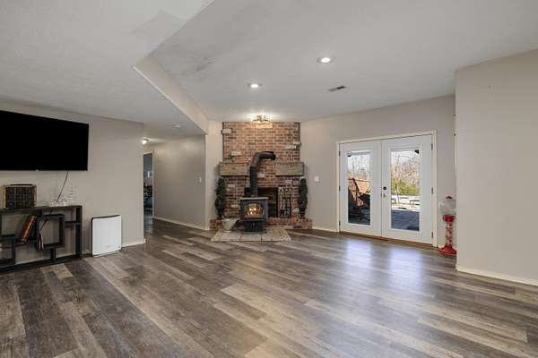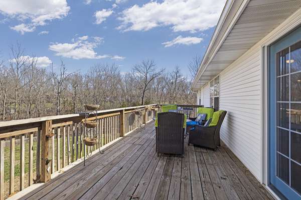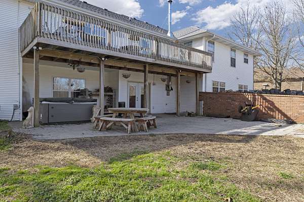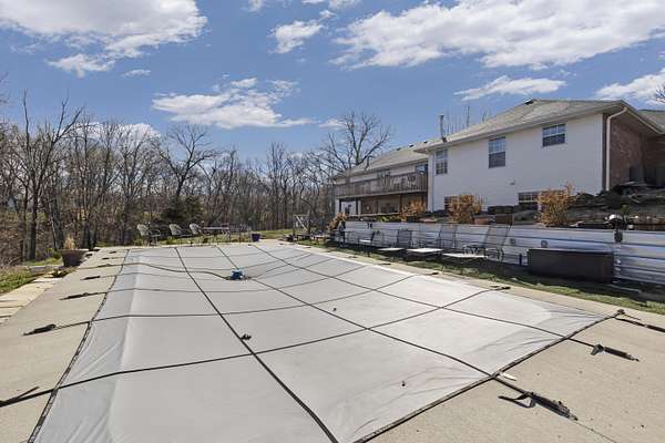 Welcome to your dream retreat in the prestigious Riverfork Ranch subdivision! This exquisite home rests on a serene, wooded 2.77-acre lot, delivering ultimate privacy and tranquility just minutes from Nixa's conveniences. Step inside to an exceptional floor plan featuring a spacious large kitchen with abundant cabinetry and a large island-perfect for meal prep, gatherings, or casual dining. All appliances convey, including the washer and dryer. The French doors open from the kitchen to a generous formal dining area, ideal for holiday feasts and special occasions. The home boasts 5 bedrooms and 3 full bathrooms, providing ample space for family and guests. The primary suite includes a bathroom ready for your personal touch-envision upgrading the shower area to create your own private oasis.The fully finished basement is an entertainer's delight, complete with a wet bar and fridge, cozy living space anchored by a wood-burning fireplace, and a versatile separate room that could easily become a workout gym, home office, theater room, or hobby haven.Outside, enjoy resort-style living with a beautiful in-ground pool and relaxing hot tub-perfect for summer days and evening soaks.Located in the award winning Nixa school district, this property offers the best of both worlds: peaceful country living with easy access to town. As a Riverfork Ranch resident, you'll enjoy exclusive private gated river access to the picturesque Finley River, featuring picnic benches, fire pits, walking trails, and a wonderful setting for quality time with family and friends.This rare gem combines timeless craftsmanship, generous space, and premium community perks. With the home being sold as-is, you have endless potential to make it your own! Your Ozarks oasis awaits!