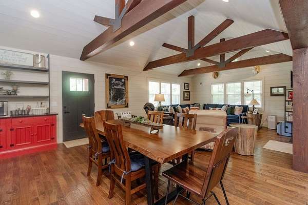 This 190 +/- acre recreational property within 30 minutes of downtown Fayetteville has unlimited possibilities. Deer, Bear, Turkey, and Hogs are all plentiful on the property. Boulders, bluffs, caves and hiking trails will thrill the outdoor enthusiast. Cabin is a 2 b 2 b bunk house sleeping up to 14. Kitchen will handle a crowd at meal time. 2 living areas complete with a wood burning fireplace make the perfect location for conversations that continue into the night. Composite back deck and enclosed porch make the outdoors feel like you have brought them inside. Large fire pit, front porch and spring fed pond add to the ambiance of being fully submerged into the slow pace of country life. Solar panels, SS appliances, granite counter tops, walk-in showers, gutters, metal roof, foam insulation, LED lights and composite decks are just some of the features that make this a go-to location for weekends away from the office. Combo box property has limited cell service OzarksGo internet available Agent owned