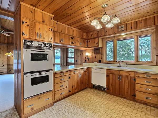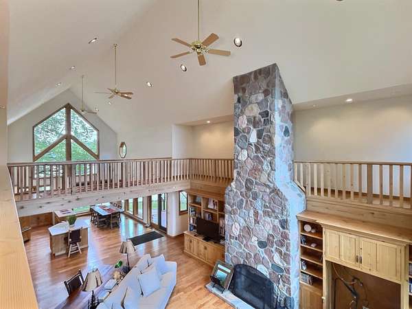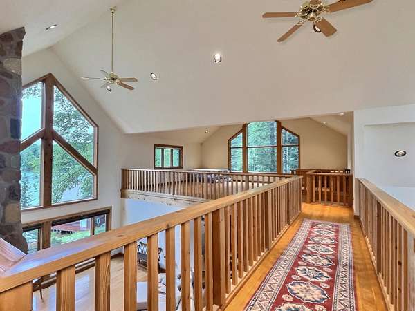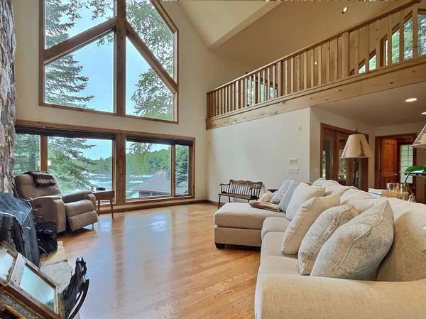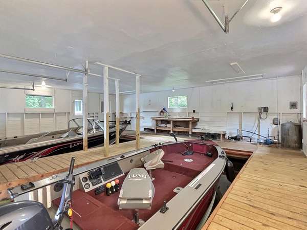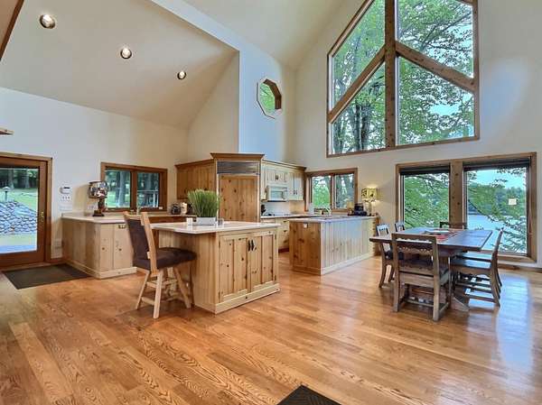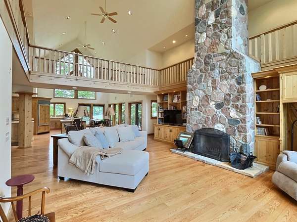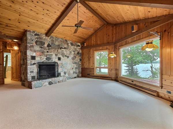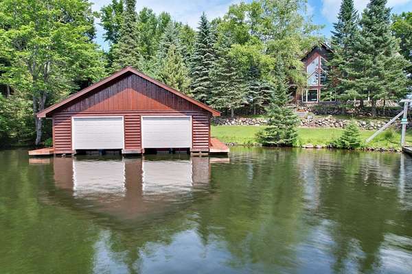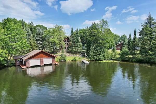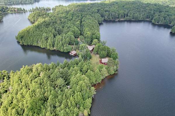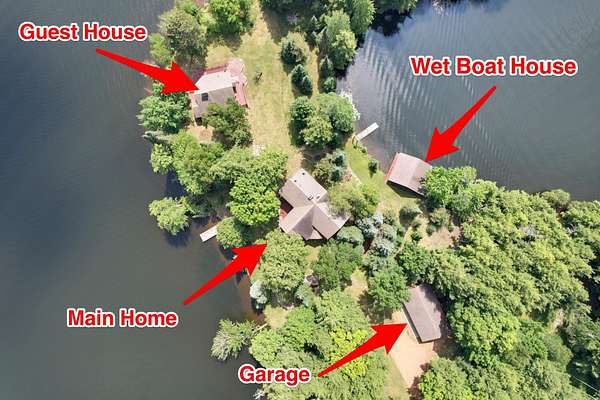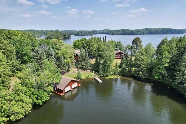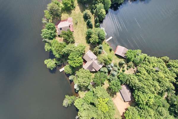 Arguably one of the best tracts of land on The Cisco Chain! Water views abound from both the 3700+ square foot 3 bedroom 3 bath main house and the 2 bedroom 2 bath guest house. Situated on a 22 acre isthmus with over 6500 feet of frontage separating West Bay Lake and Morley Lake. Gorgeous hardwood floors and a soaring stone fireplace grace the great room. The master suite will captivate you with its expansive views and the screen porch is sure to be a favorite spot in the entire property. No need to choose between sunrise or sunset views here as they both glow through the opposing walls of windows. Check out the irreplaceable wet boathouse on the sheltered side of this fantastic property. This ideal lake estate is the quintessential Northwoods lake estate enjoys end of the road privacy too!