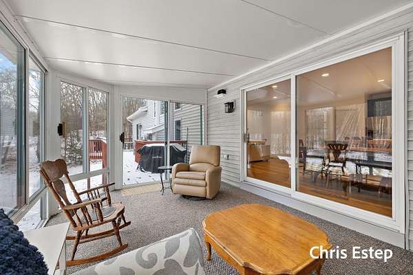 OPEN HOUSE Saturday, January 17th 1pm-2:30pm. Open and spacious 5-bedroom, 3.5-bath home approx. 4,400 finished sq. ft., completely remodeled with high-end amenities throughout, including quartz countertops and luxury vinyl plank flooring. Vaulted ceilings and an open floor plan create a bright, airy feel. Main floor primary suite and laundry room, upper level has large loft area, 2 bedrooms and full bath. Lower walkout level features 2 more bedrooms, huge family room, and another full bath. Situated on over 2 wooded acres on a quiet cul-de-sac, this exceptional property borders North Ottawa Dunes and hiking trails and is just a 1.4-mile walk to a secluded Lake Michigan beach at Hoffmaster State Park. Enjoy serene views of nature and a private pond from the large three-season room, expansive deck, or the walkout lower level. All major updates have been completed, including roof and mechanicals, allowing you to move right in and enjoy worry-free living. A rare opportunity to own a private retreat surrounded by nature while still offering modern comfort and space.