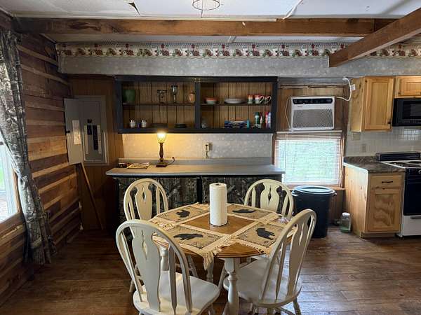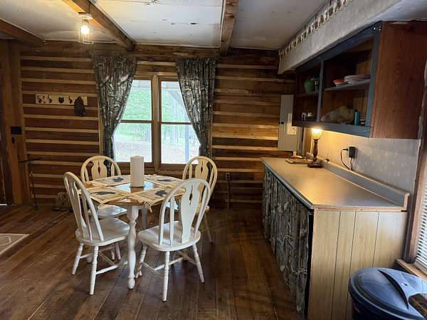 Welcome to your private retreat in the heart of the Green Ford Community of Wayne County! Nestled on approximately 4.5 surveyed acres and surrounded by the natural beauty of the mountains, this charming cabin offers the perfect blend of seclusion and outdoor adventure. Nature lovers will appreciate the unbeatable location-just a short walk to the Little South Fork River and easy access to hunting, kayaking, canoeing, hiking, and endless recreational opportunities right at your doorstep. The cabin features an open-concept layout with a spacious kitchen and living area, complete with a chimney a wood stove ideal for cozy evenings. The main level includes one bedroom and one full bath, while the unfinished second floor offers excellent potential to expand with an additional bedroom or loft space. Enjoy peaceful mornings and relaxing evenings on the full-length covered front porch, or take advantage of the back porch, already designed to be screened in or enclosed-perfect for added living space, a guest room, or a sunroom. Outside, the property is well-equipped for both work and play. A two-car attached carport and large circular driveway provide ample parking for vehicles, boats, or campers. You'll also find a barn with loft, plus two additional sheds, including a 20'x20' building with enclosed storage and a drive-through bay-ideal for tractors, ATVs, or equipment. Utilities are already in place, making this property even more appealing. Enjoy the flexibility of two water sources with a private well and access to city water at the road. , phone, cable, and internet are all available. Whether you're looking for a full-time residence, weekend getaway, hunting cabin, or investment opportunity, this property offers unlimited potential in a peaceful, scenic setting.
