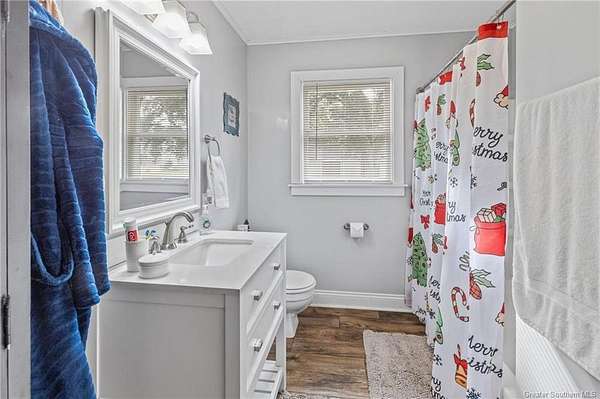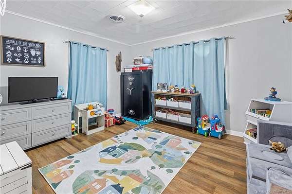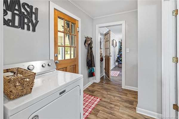 - Bathtub, Crown Molding, Formica Counters, Kitchenopentofamilyroom, Shower, Shower in Tub